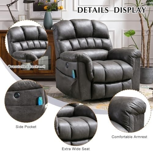CANMOV Power Lift Recliner Massage, Heat, Safe Heavy-Duty, w/USB Charge Port