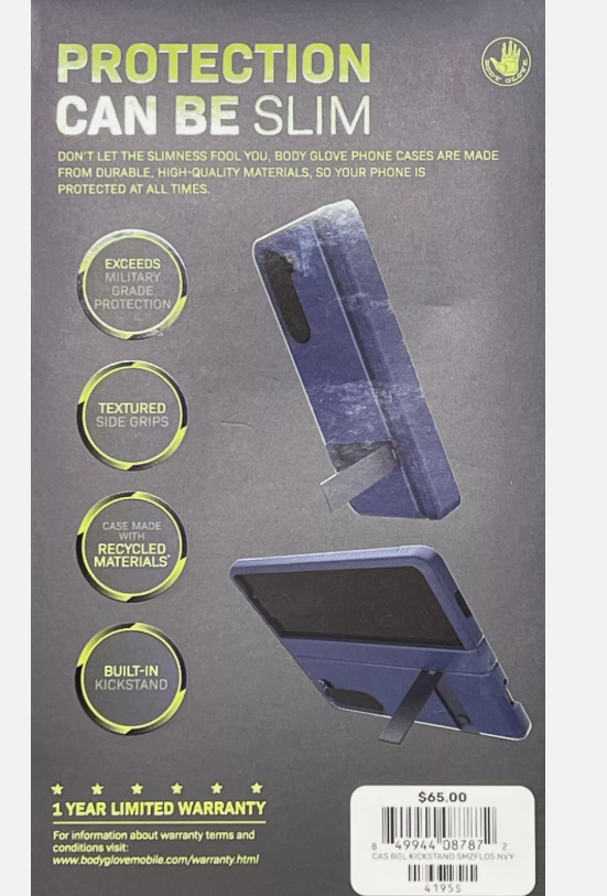 Experience the perfect blend of protection and style with the Body Glove Folding Kickstand Case designed specifically for the Samsung Galaxy Z Fold5. Crafted from durable plastic, this hard case is navy in color, showcasing a sleek design that complements your device's elegant aesthetics. The case features a convenient kickstand, ideal for hands-free viewing, and is engineered to be lightweight, ensuring it won't add unnecessary bulk to your smartphone. Additionally, it boasts an antimicrobial coating to maintain cleanliness. Everything you need for daily use is included, including a hard case to safeguard your device.