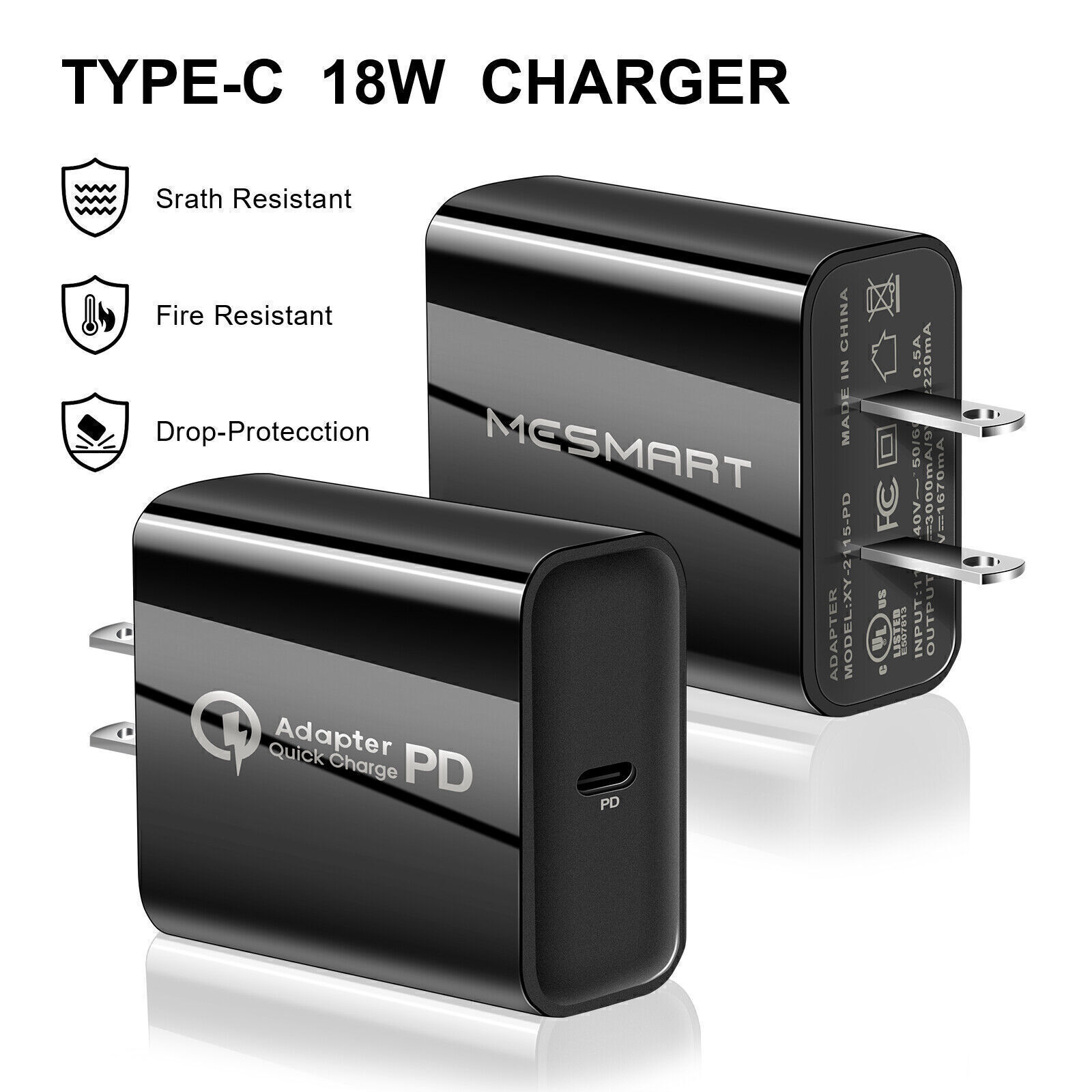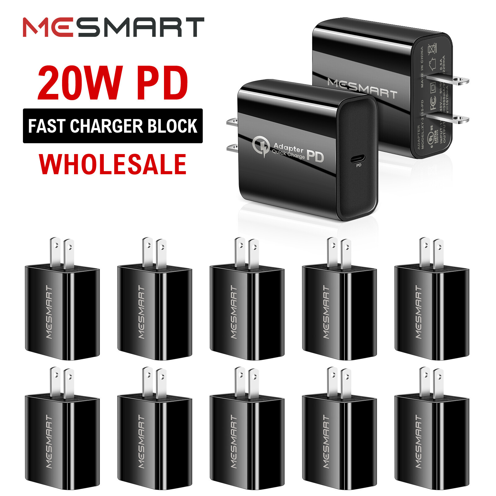 3 Pack for iPhone Fast Charger 20W PD USB C Wall Charger with 6FT Type-C