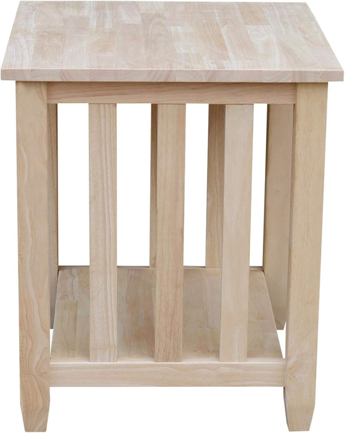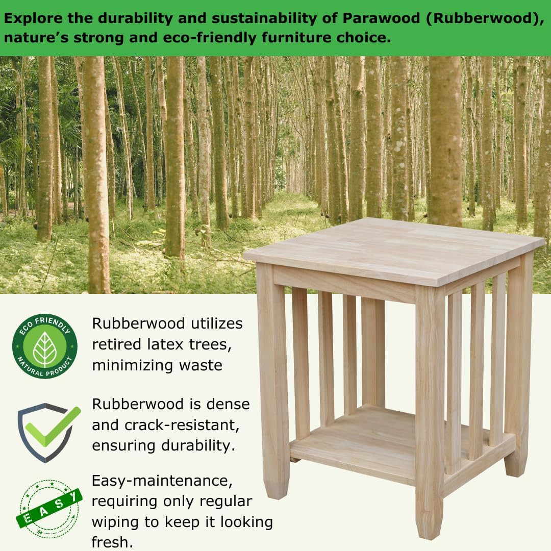 , Mission Tall End Table, Solid Real Wood, Sturdy Parawood, DIY, Paint/Stain Ready, Unfinished. [Material]: Constructed from solid parawood known for its exceptional sturdiness and durability. Is Stain Resistant No.