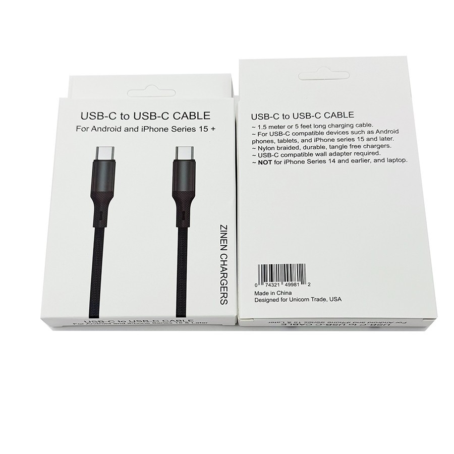 ZINEN USB Type-C to USB Type-C Cable – Product Black – Designed for Android & iPhone 15 and Later. Its sleek, durable design makes it an ideal choice for Android devices and all iPhone models released after iPhone 15.