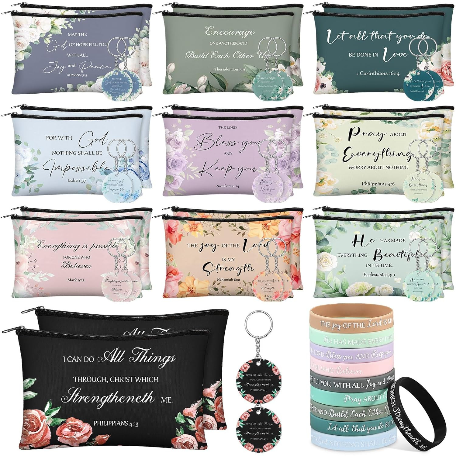 60 Pcs Church Gifts for Women Bulk Religious Makeup Bags Inspirational Scripture