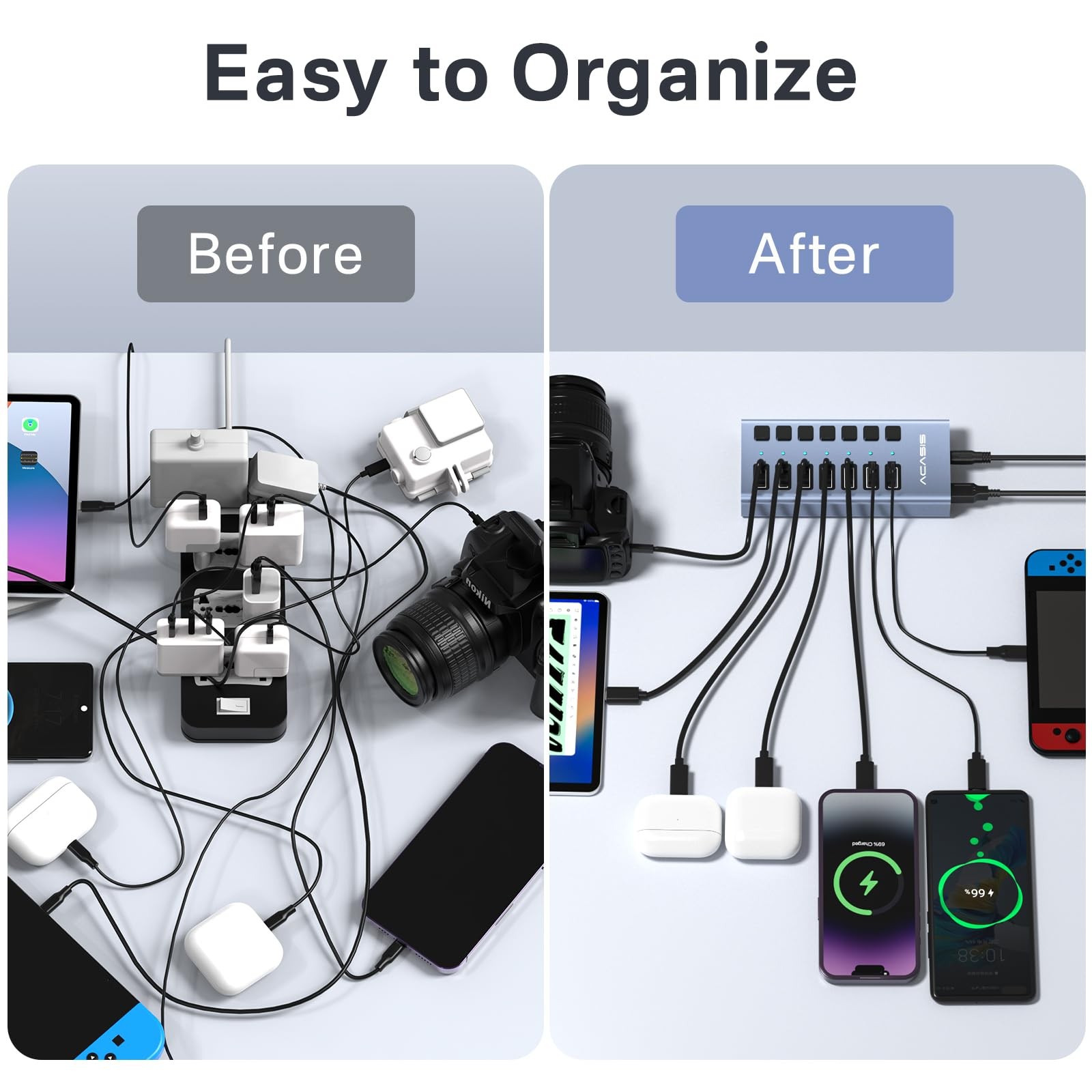 Powered USB 3.2 Hub, ACASIS 7 Ports Hub with 10Gbps Data 7 ports