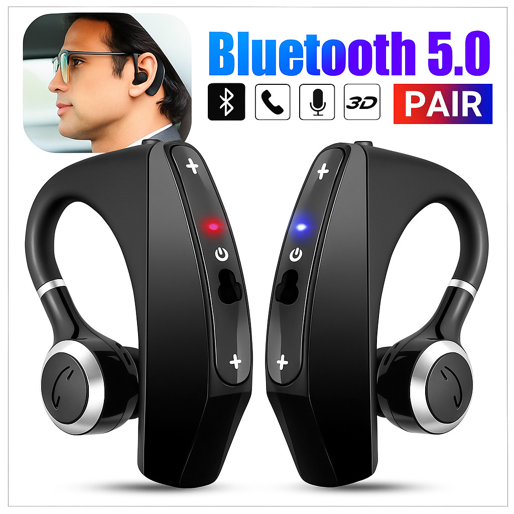 1X Pair Wireless Bluetooth 5.0 Earpiece Noise Cancelling Headset Ear Hook