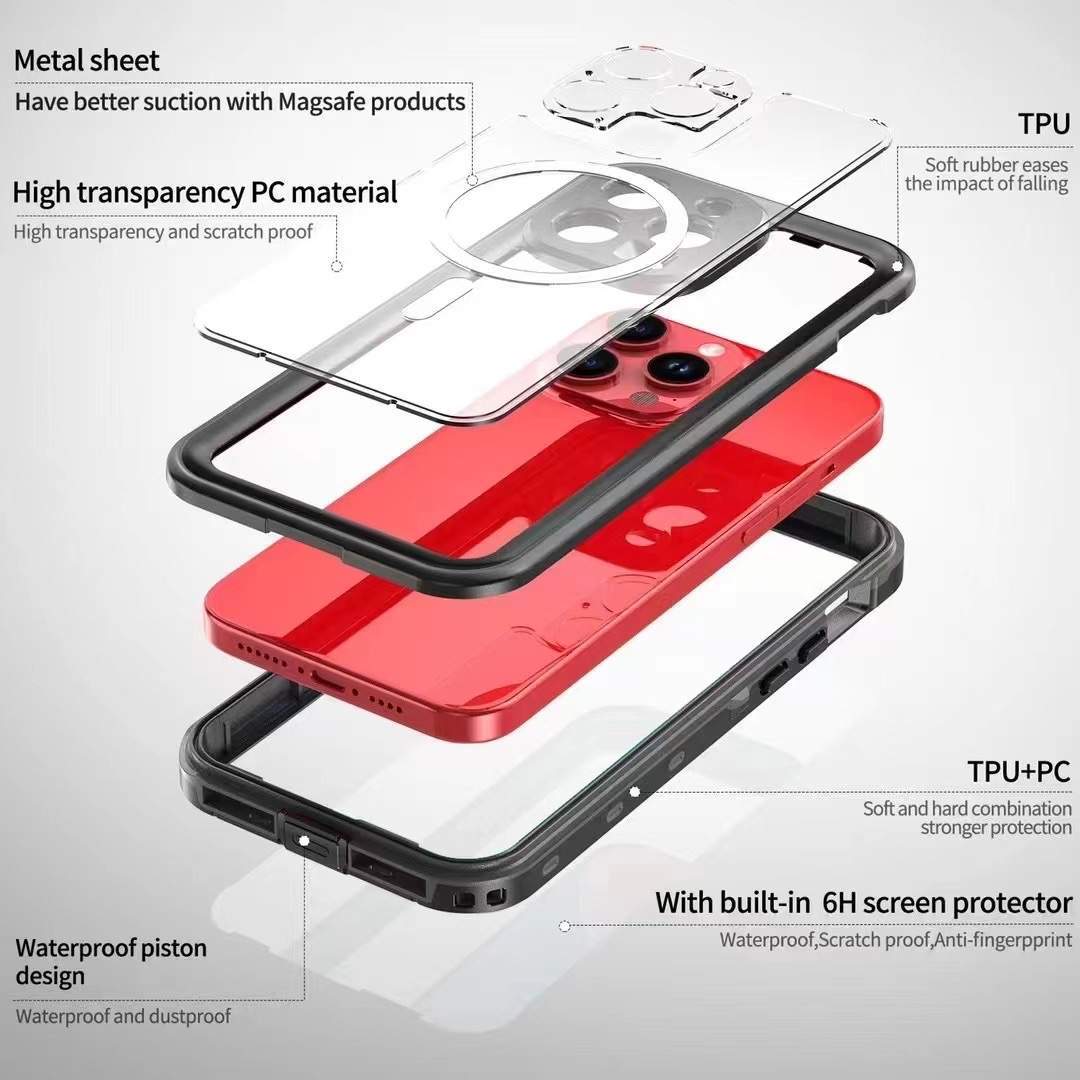 For iPhone 15 14 13 Pro Max Waterproof Mag Safe Case Cover with Screen Protector