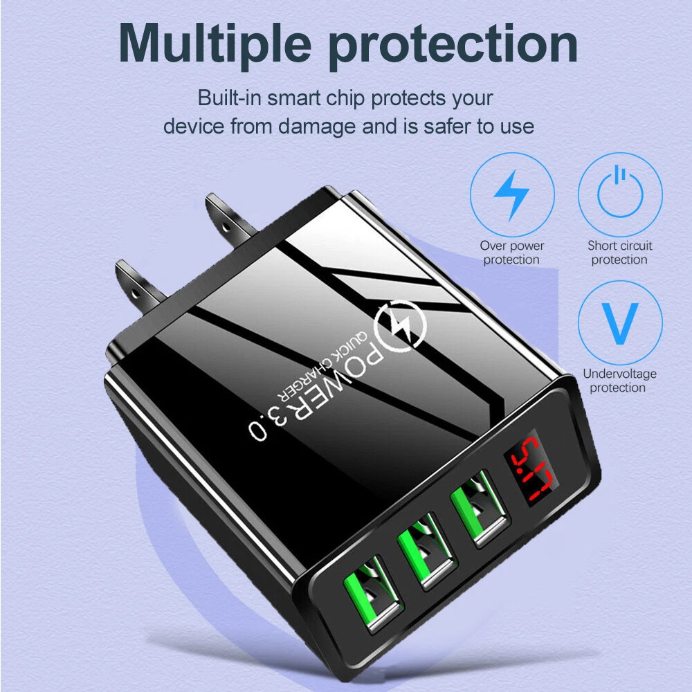 2Pcs 3-Ports Fast Wall Charger Fast Quick QC 3.0 USB Hub For iPhone iPad Samsung