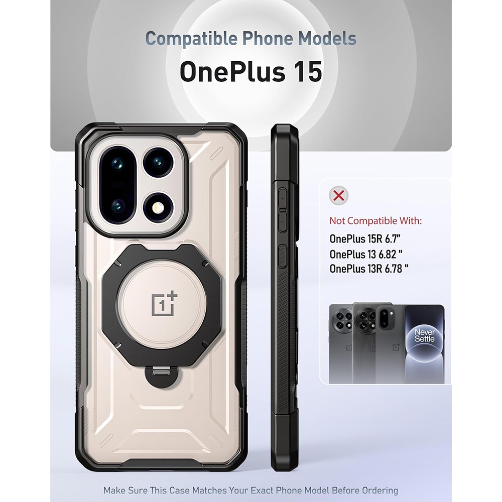 For OnePlus 15 Case Built in Screen With MagSafe Kickstand Poetic Cover Black