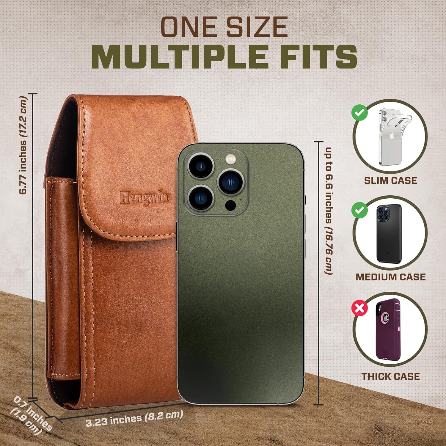 Hengwin Genuine Leather Cell Phone Holster Case with Belt Clip Fit for iPhone...