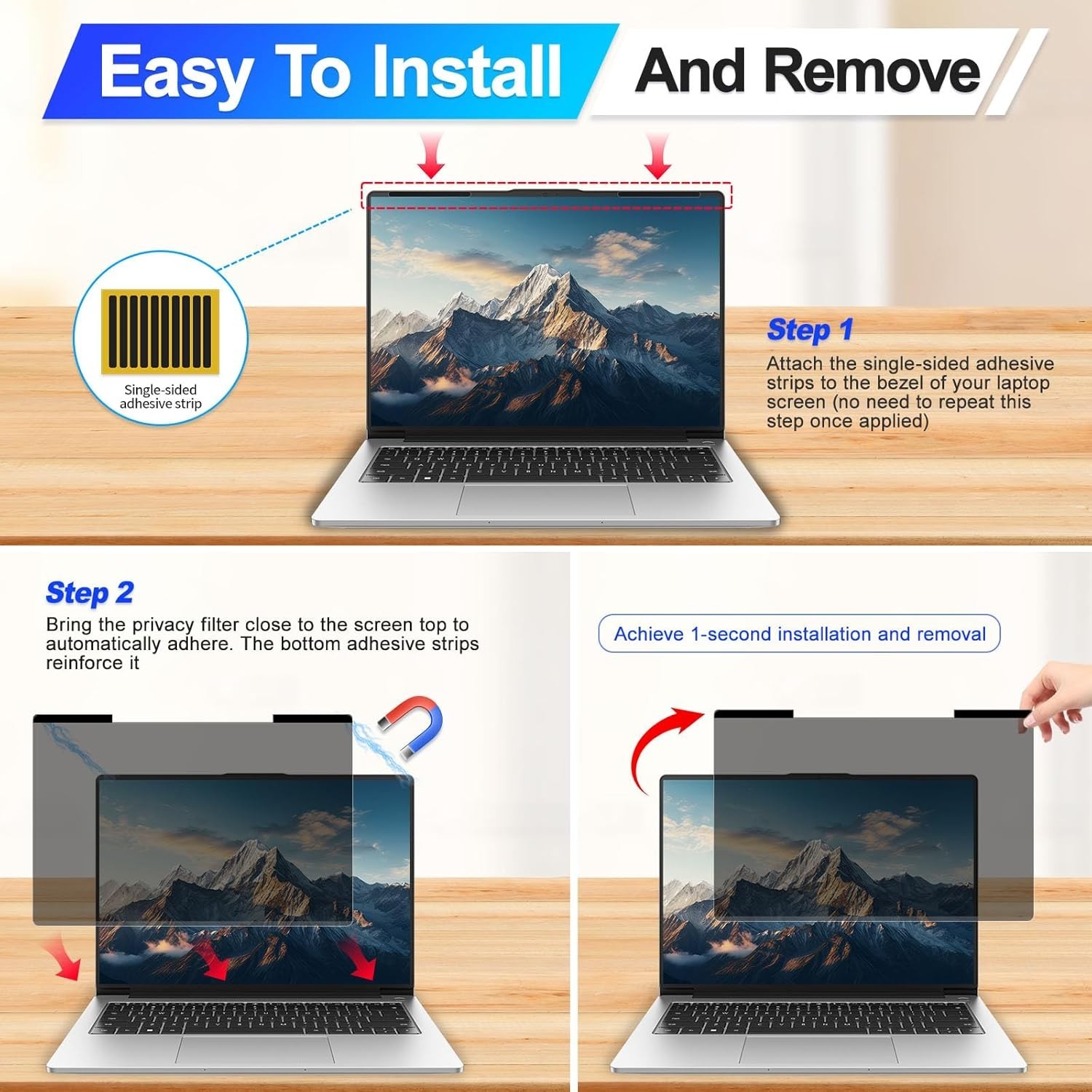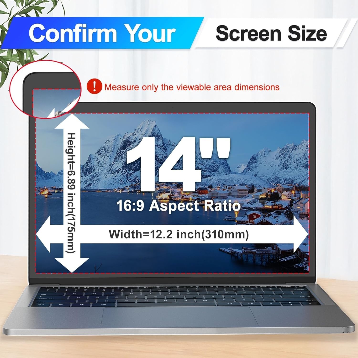 Magnetic Laptop Privacy Screen 14" for 16:10 Monitor Removable Anti Glare