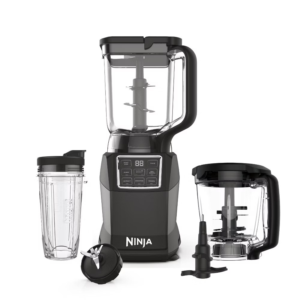 •Ninja Kitchen System with Auto-iQ Boost allows you to truly customize your drink-making experience. •Nutrient & Vitamin Extraction* combined with Pro Extractor Blades breaks down whole fruits and veggies for refreshing, full-bodied nutrient juices. •High-Performance Blending combined with the blenders high-performance blades powers through frozen ingredients and ice for cool smoothies and shakes. •72 oz. Total Crushing Pitcher (64 oz. max liquid capacity) •5 Cup (40 oz.) Precision Processor Bowl for added versatility and functionality •24 oz.