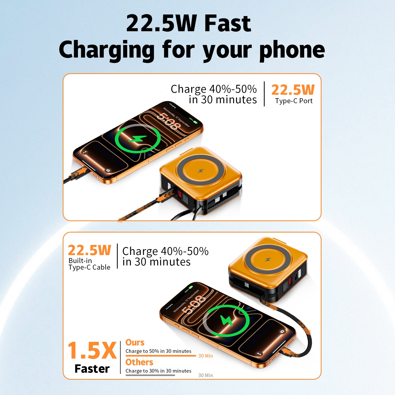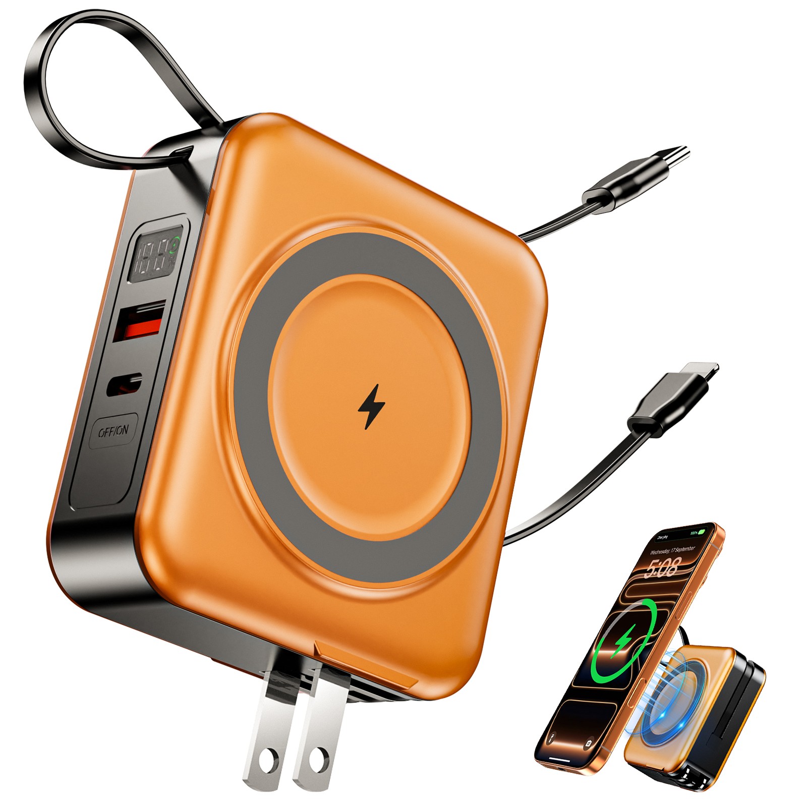 Magnetic Power Bank 10000mA 5 in1 22.5W USB-C Charger Built-in AC Plug For Phone