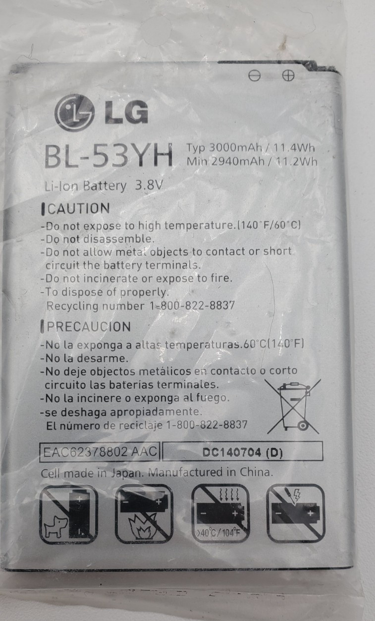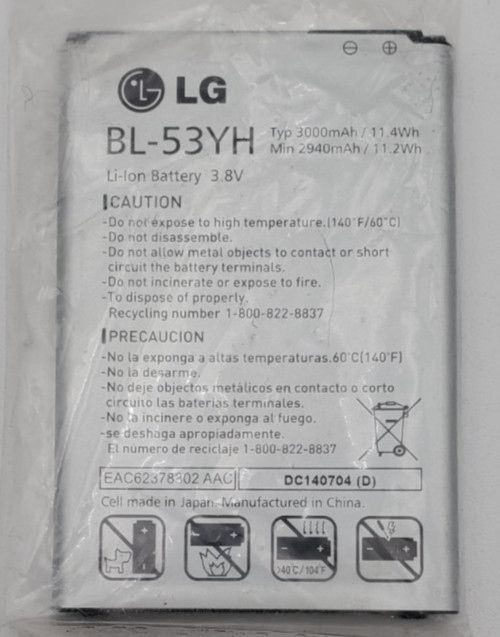 LG G3 Rechargeable Li-ion Phone Battery 3.8V Typ 3000mAh 11.4Wh BL-53YH New OEM