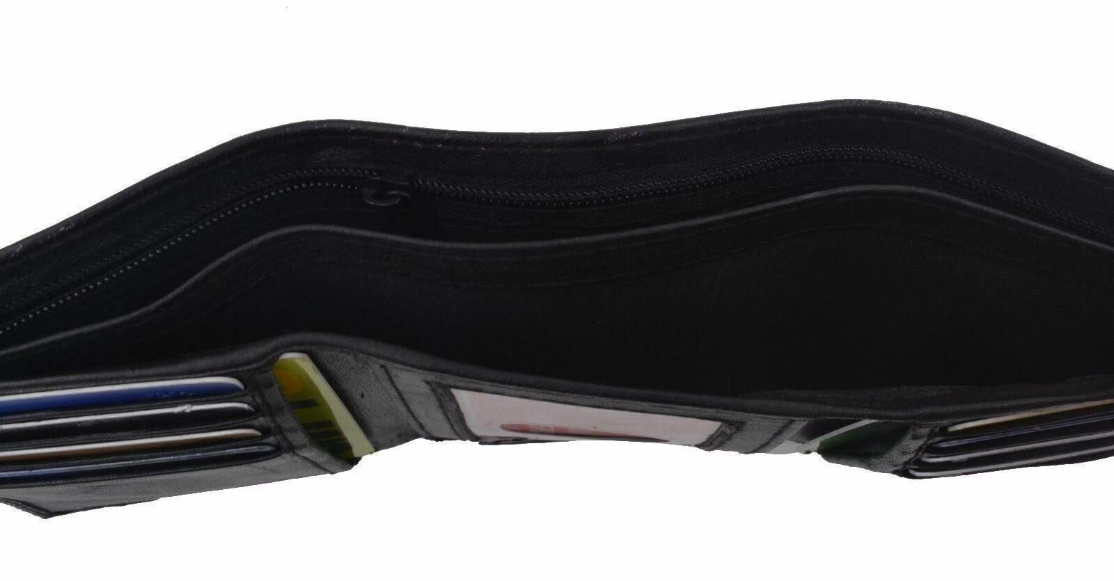 Men's Genuine Leather Trifold Wallet Black 8 Credit Card slots ID window
