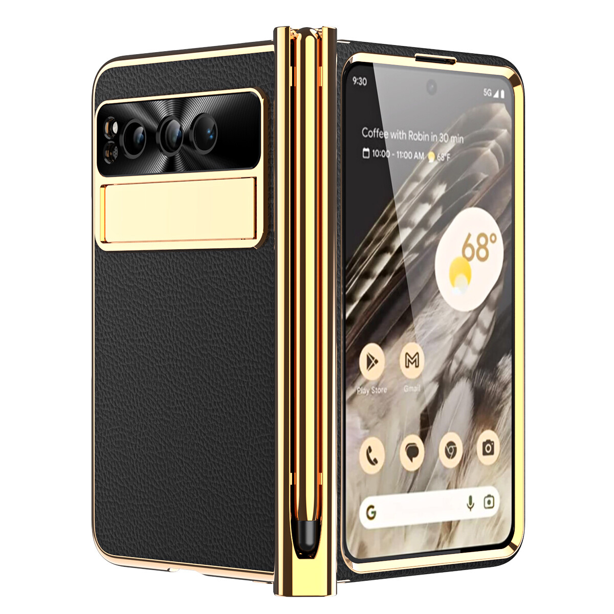 -Made of Leather + PC -it has Stand function- convenient when watching movie or typing a message. -Protecting your phone from scratches,dust,shock and fingerprint. Military Grade Protection - full body shock absorption and raised 4 anti-collision corners effectively absorb and disperse 99% of the impact force. Protect your Google Pixel Fold phone against drop and bumps. Upgrade Hinge Protection - New upgraded hinge cover provides extra sturdy protection and grip. Made of higest quality material, upgrade design hinge protection. Built-in pen slot (Pen included) Built-in Screen Protector - Screen protector and 2mm raised edge, double layer protect your Google Pixel Fold screen against guards against scratches and borken without compromising sensitivity.-Built-in Screen Protector M.