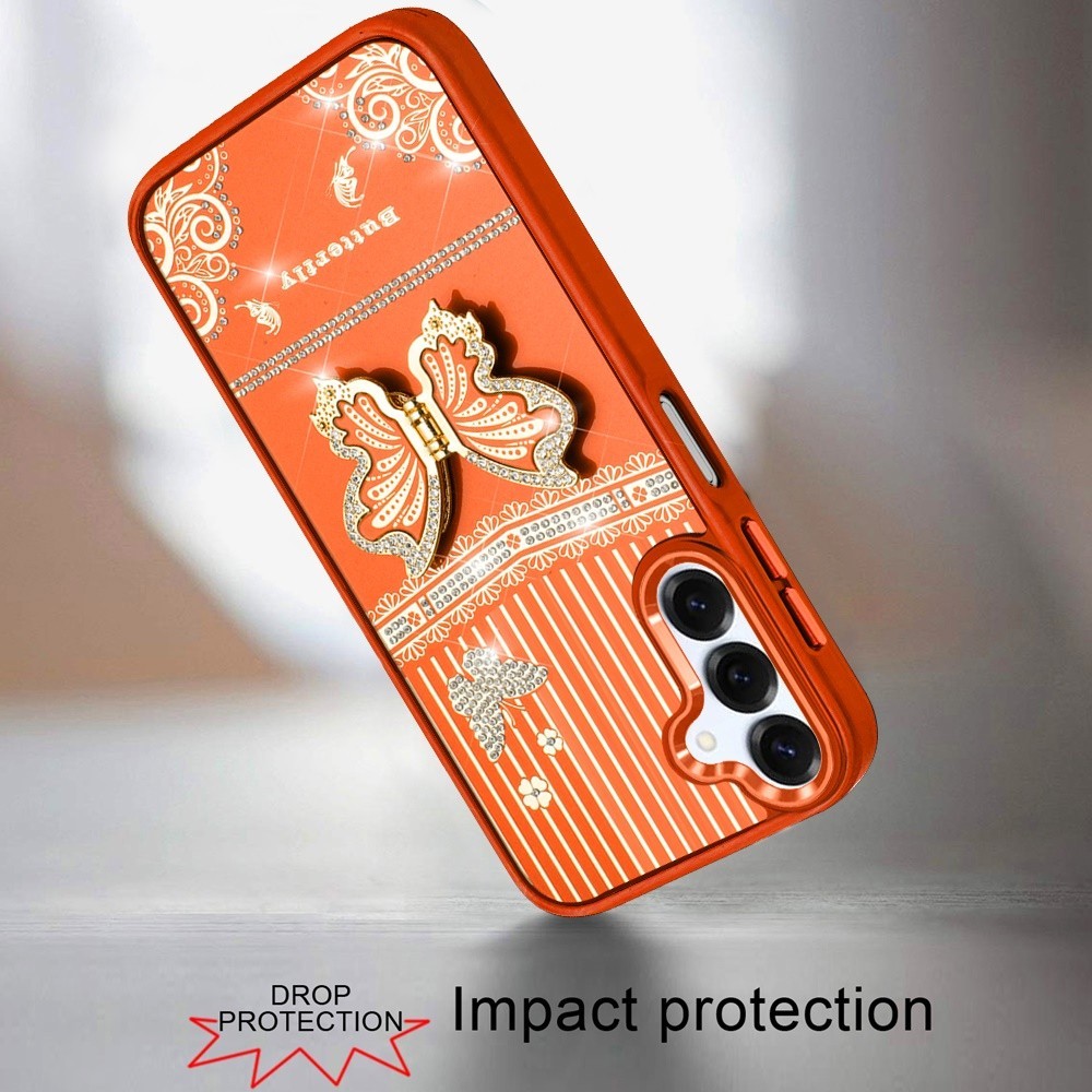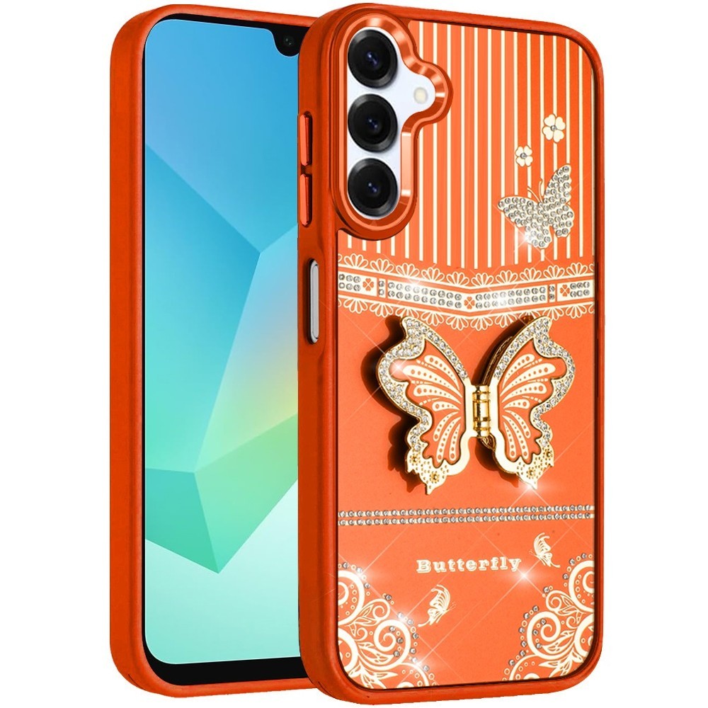 For Galaxy A16 5G Case Splendid Glitter Butterfly Stand Metallic Edges Cover