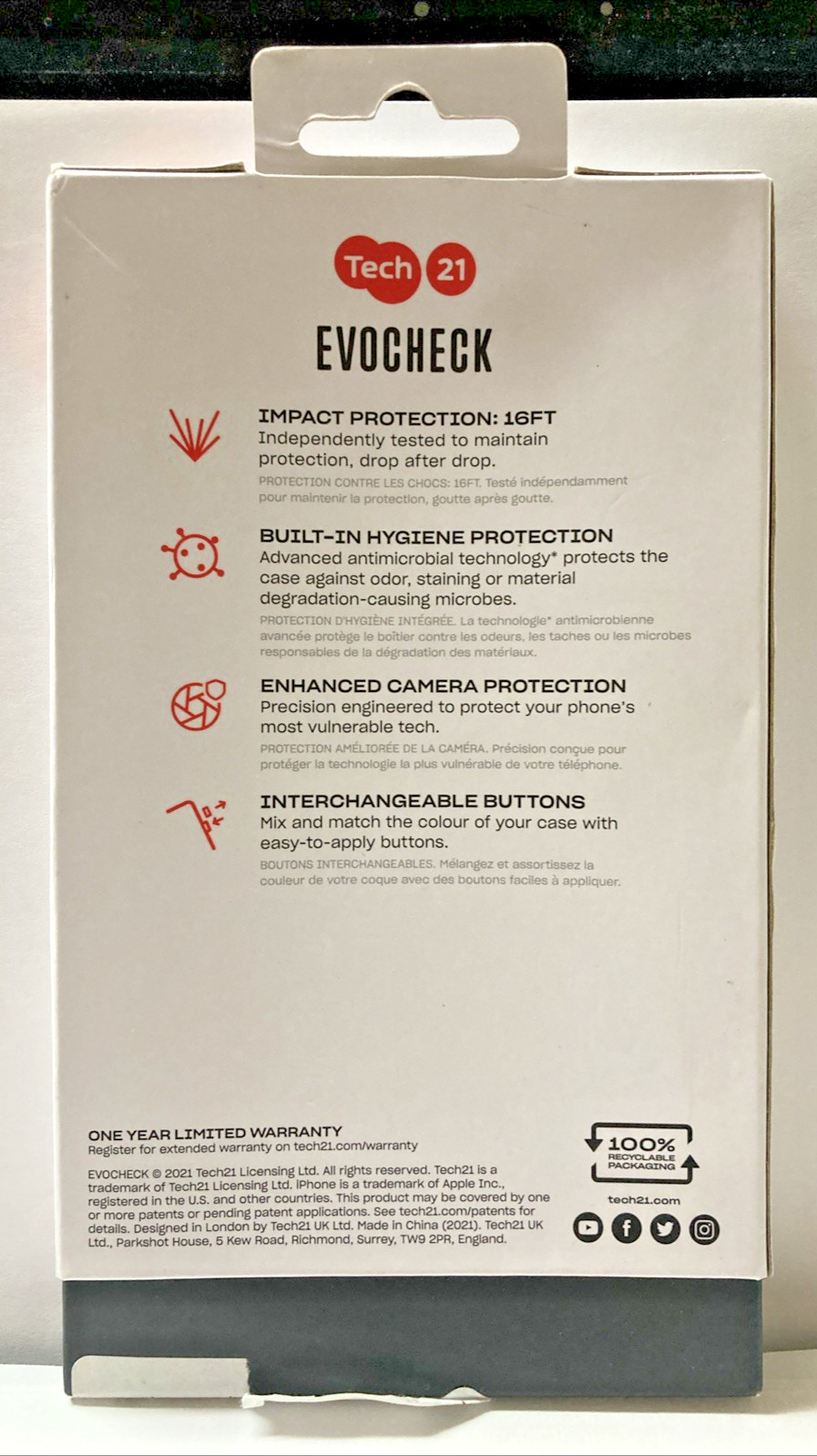 Tech 21 EVOCHECK Multi Drop 16FT/4.9M Impact Tested phone Protection- Black Case