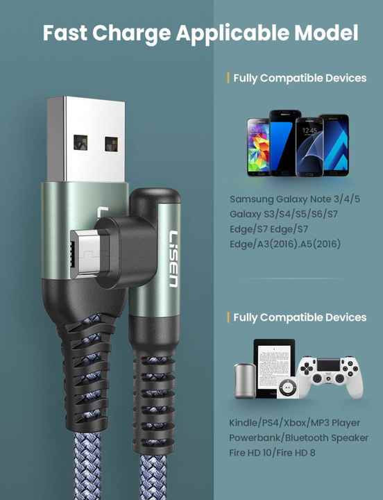 90 Degree Fast Charge USB-A to C Cable Type C Charger Cord L Quick Charging LOT