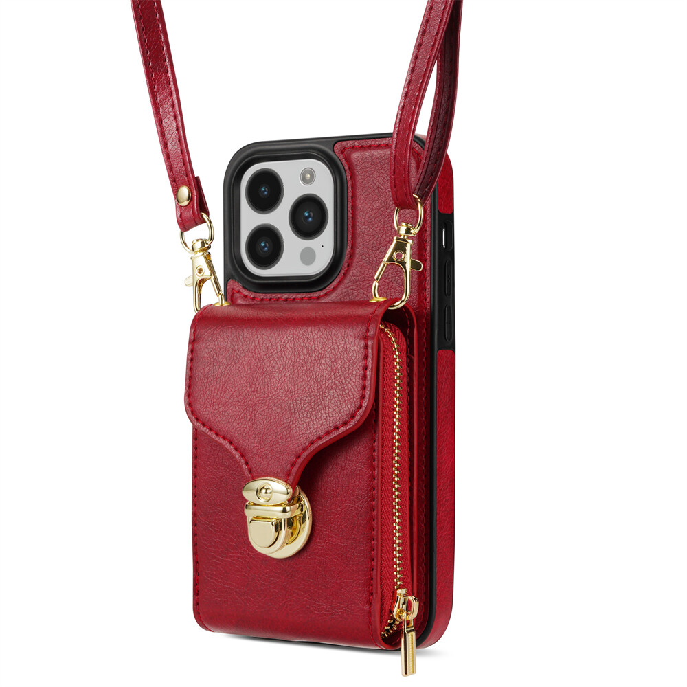 For Samsung Huawei iPhone Leather Wallet Card Bag Stand Crossbody Strap Case