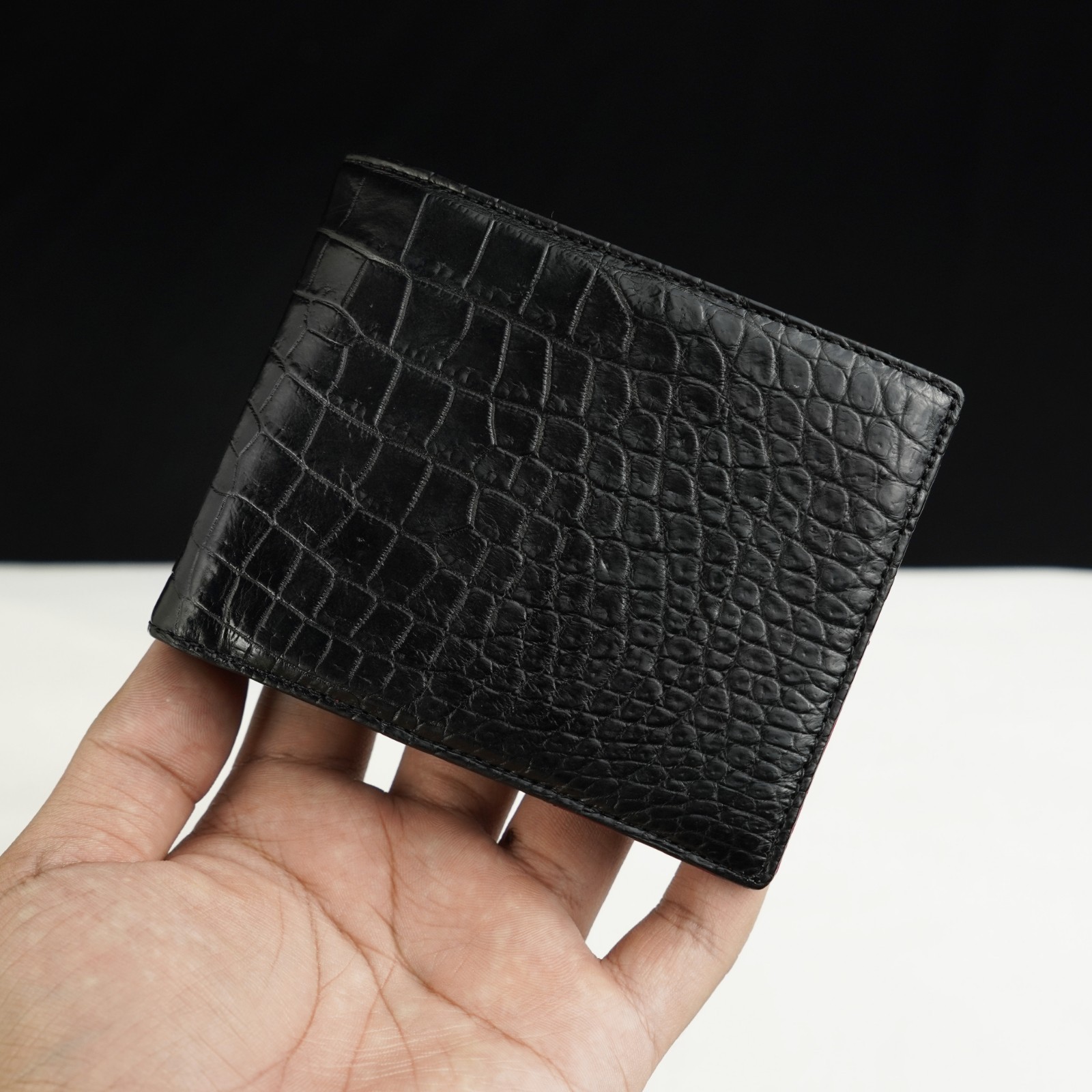 Handmade Croc And Ostrich Leather Skin Bifold Wallet Men's Brown