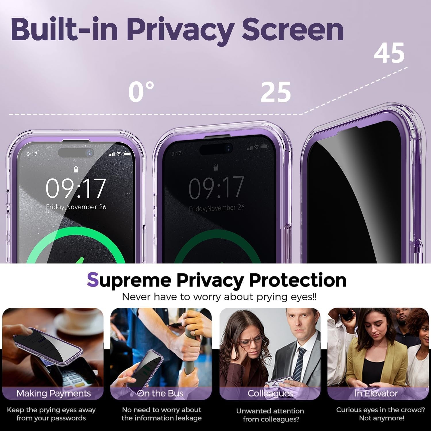 The ORNARTO iPhone 15 Pro Max Magnetic Stand Glass Screen Full Body Case in Purple is a sleek and protective back case designed specifically for Apple iPhones. It includes a protective skin and features a matte finish, making it both stylish and durable. The case also has a ring kickstand and magnetic closure for added convenience. Made from a combination of PC and TPU materials, this lightweight and shockproof case provides reliable protection against drops and scratches, ensuring the safety of your device. Additionally, it is compatible with various iPhone models and supports wireless charging with its magnetic design.