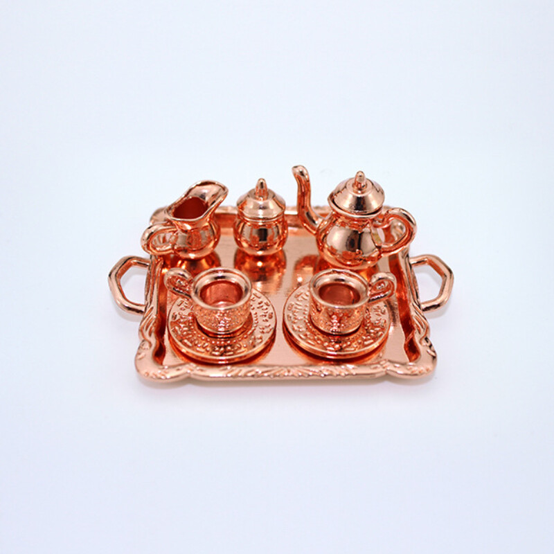 10Pcs/Set 1/12 Dollhouse Miniature Silver Metal Tea Coffee Tray Tableware Set