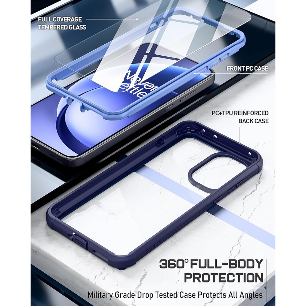 for BLU View 5 Phone Case with Tempered Glass Screen Protector,Slim Soft Blue