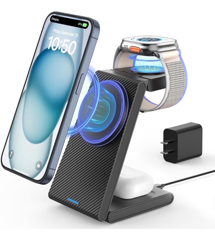 3-in-1 Wireless Charging Station for MagSafe,Foldable Magnetic Stand for iPhone