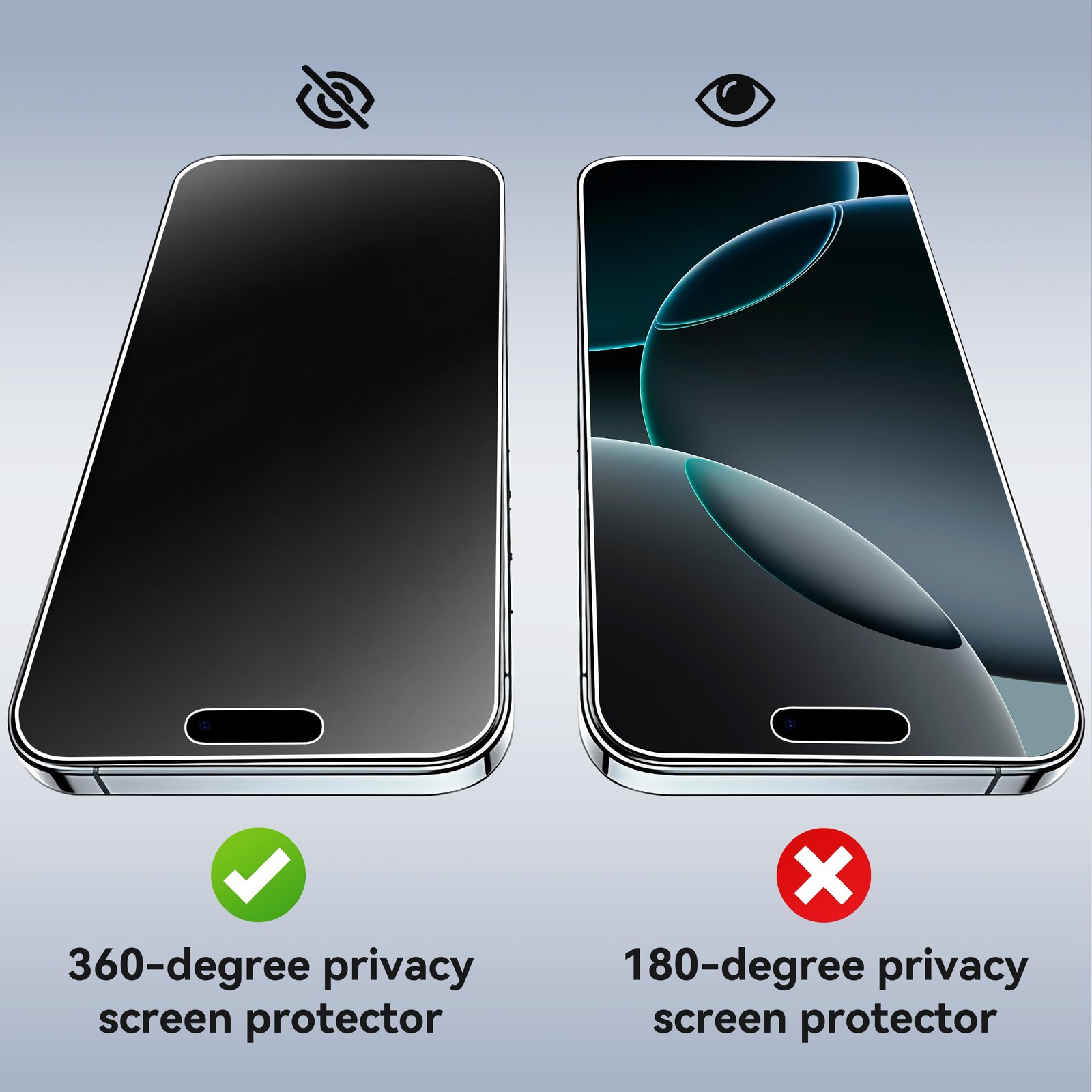 4 Directions 360 Degree Privacy Protection: Ailun's 360 degree privacy screen protector in both horizontal and vertical directions ensures that your phone screen is not visible from the left, right, up, or down.