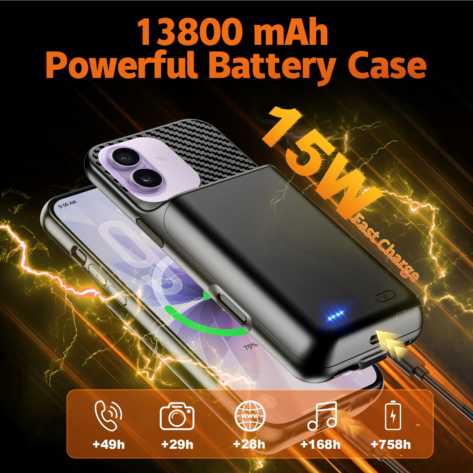 13800mAh External Battery Charger Case Power Bank Cover For iPhone 16 pro/17