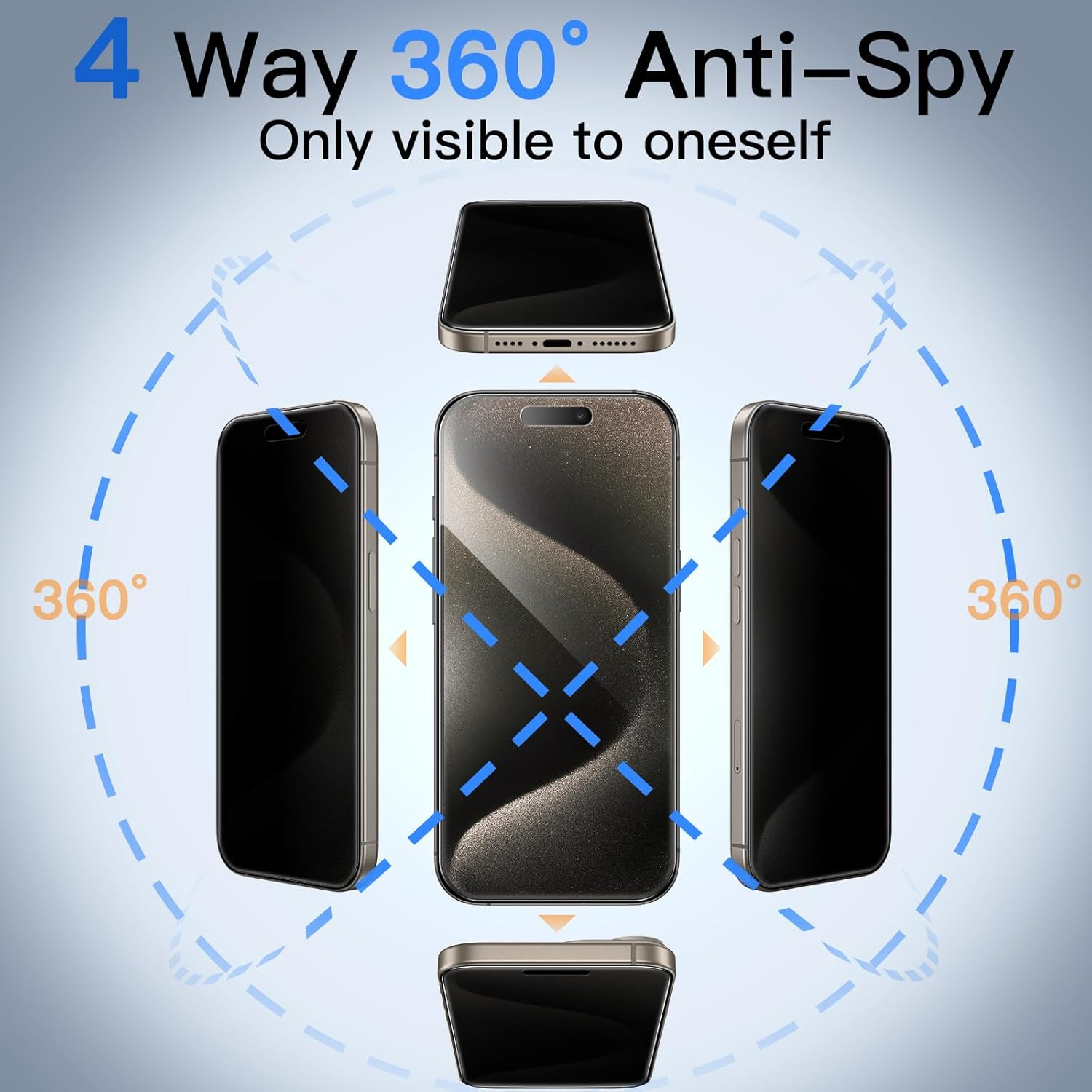 2 Pack 360 Degree for Iphone 16 Pro Max Privacy Screen Protector, 4-Way Private