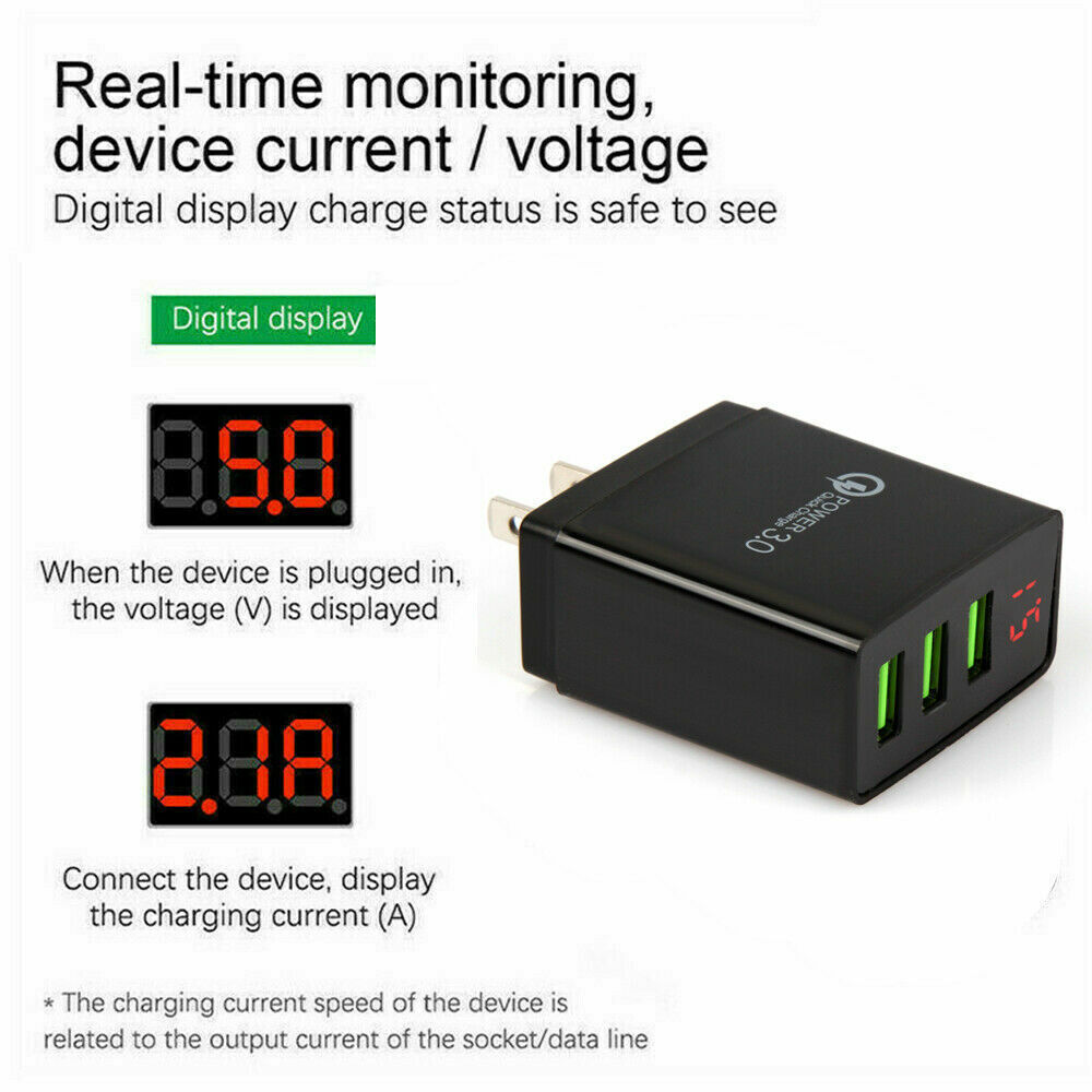 3PCS 3 Port Fast Quick Charging Wall Charger LED QC 3.0 3-USB Hub Power Adapter