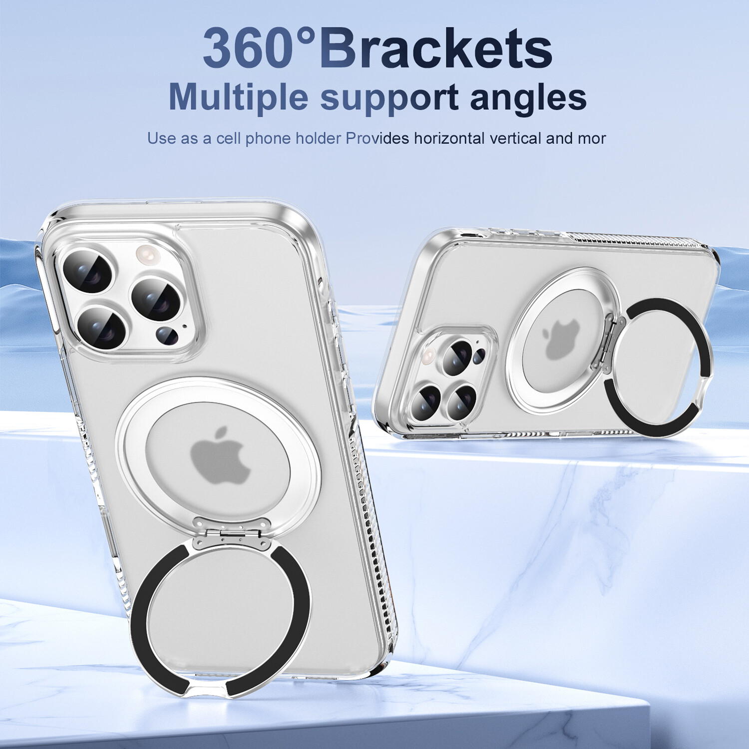 Features: 360° Rotating Kickstand: The innovative 360° rotating kickstand provides ultimate versatility, allowing you to watch videos in landscape or portrait mode effortlessly. Magnetic & Wireless Charging Ready: Built with a strong magnetic ring, this phone case supports Mag-Safe wireless charging, making it convenient to charge without removing the case. Anti-Scratch & Rugged Protection: The durable PC+TPU material offers full protection against scratches, drops, and impacts, ensuring your phone stays safe while maintaining a sleek, clear look. Slim & Lightweight Design: This slim, lightweight case adds minimal bulk to your device, giving you a comfortable grip while keeping your phone stylish and protected.