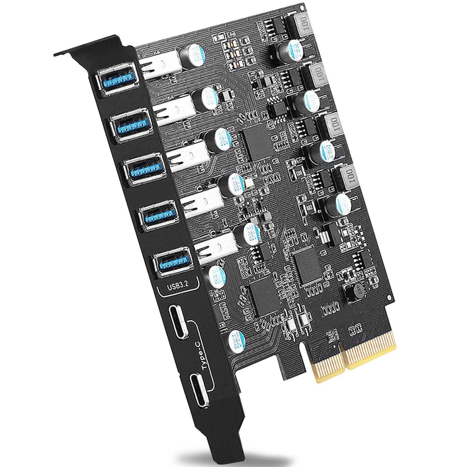 10Gbps PCIe USB 3.2 Expansion Card 7-Port Hub, 2x USB-C & 5x Type-A, Power Modul