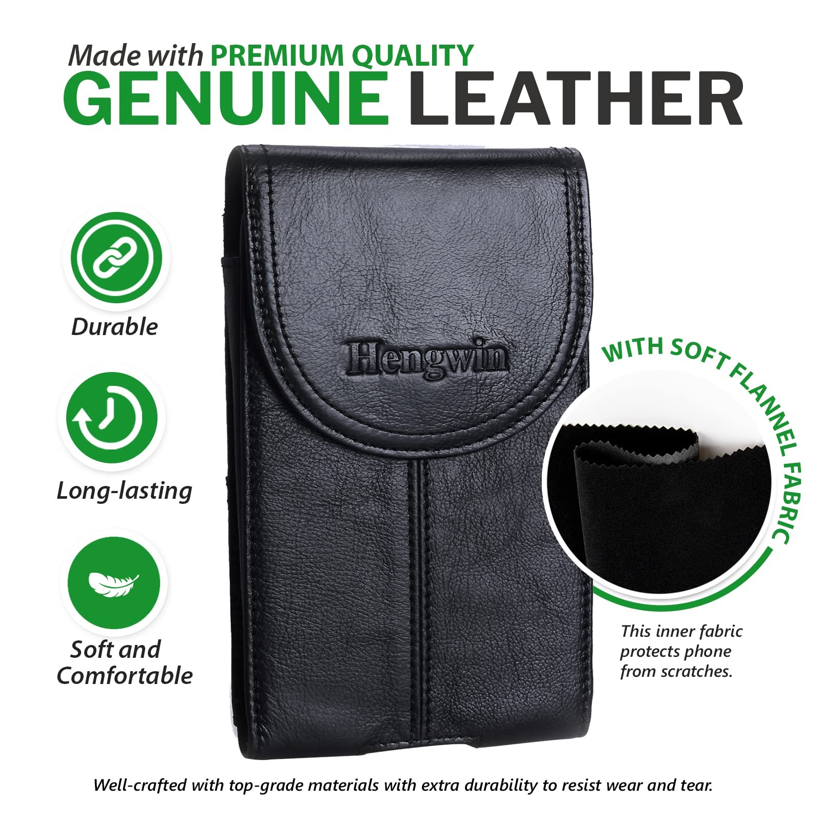 Hengwin Phone Holster Belt Case with Belt Clip, Genuine Leather Belt Pouch Cell
