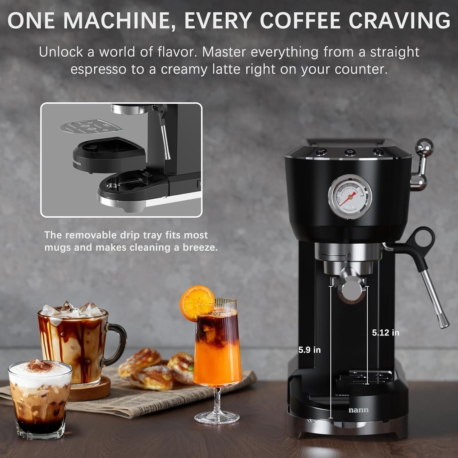 20 Bar Espresso Machine with Milk Frother, Stainless Steel Coffee Maker for Cappuccino, Latte & Cold Brew