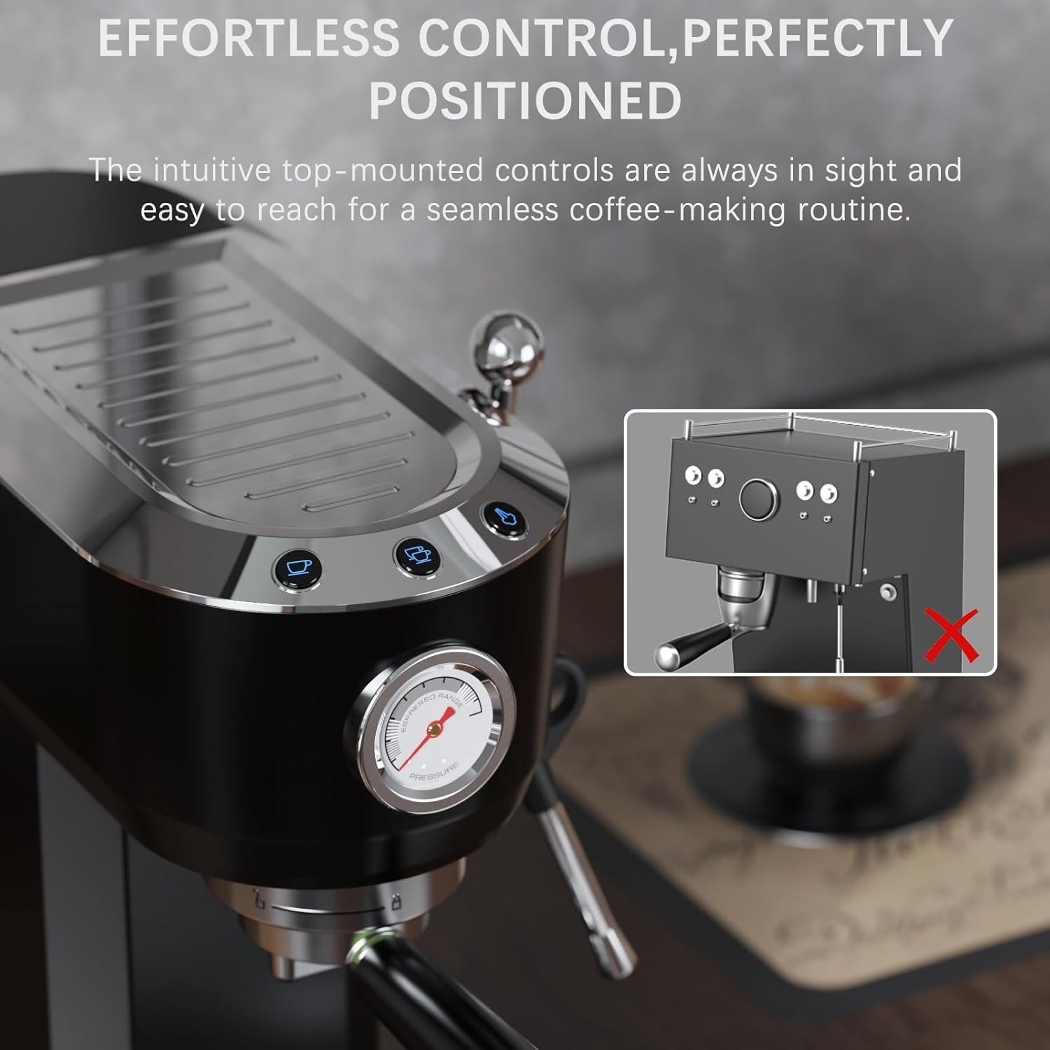 WHALL Espresso Coffee Maker with Milk Frother Steam Wand, Stainless Steel