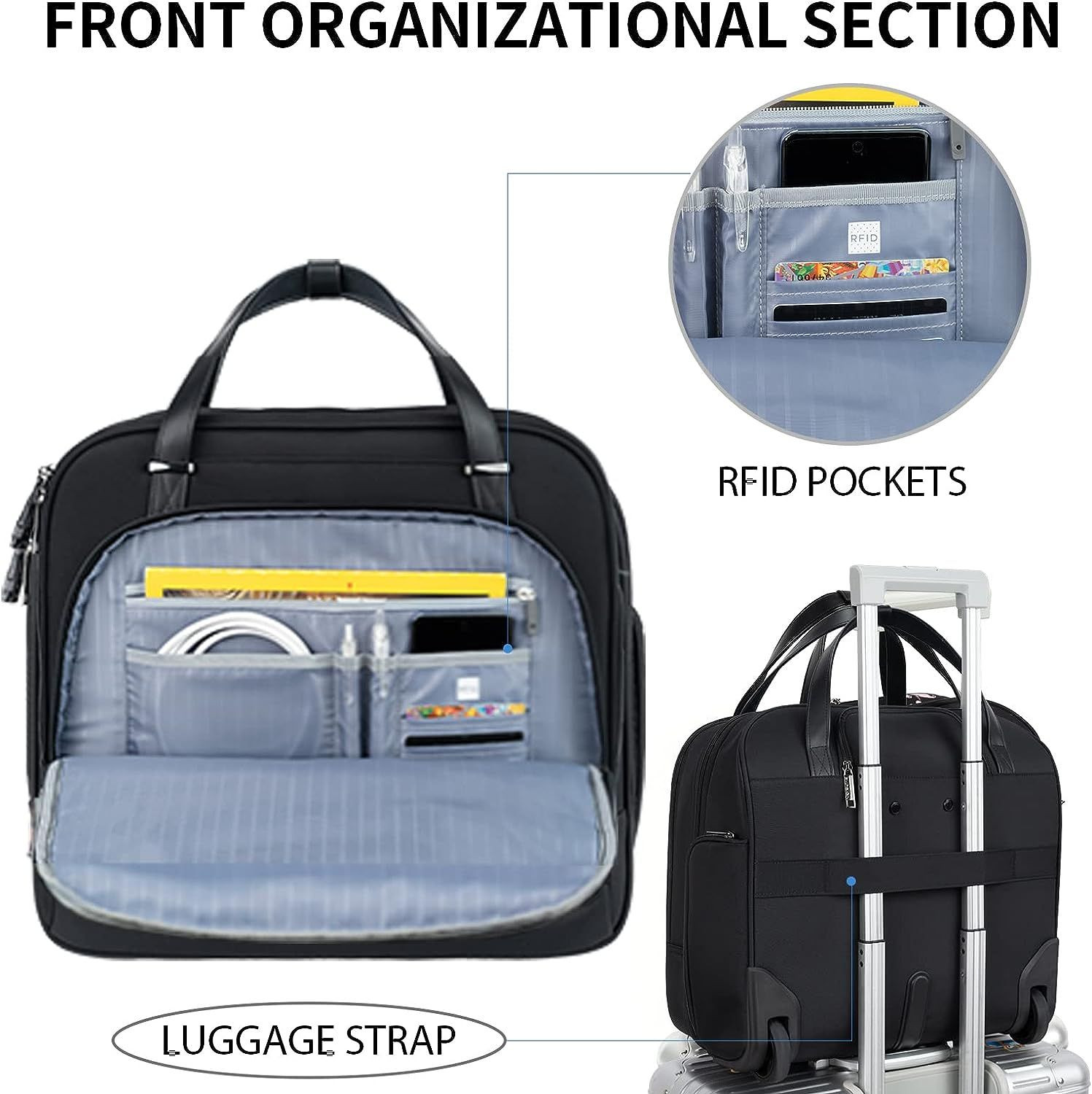 EMPSIGN Rolling Bag w Wheels Briefcase Women Fits Up to 15.6" Laptop RFID Pocket