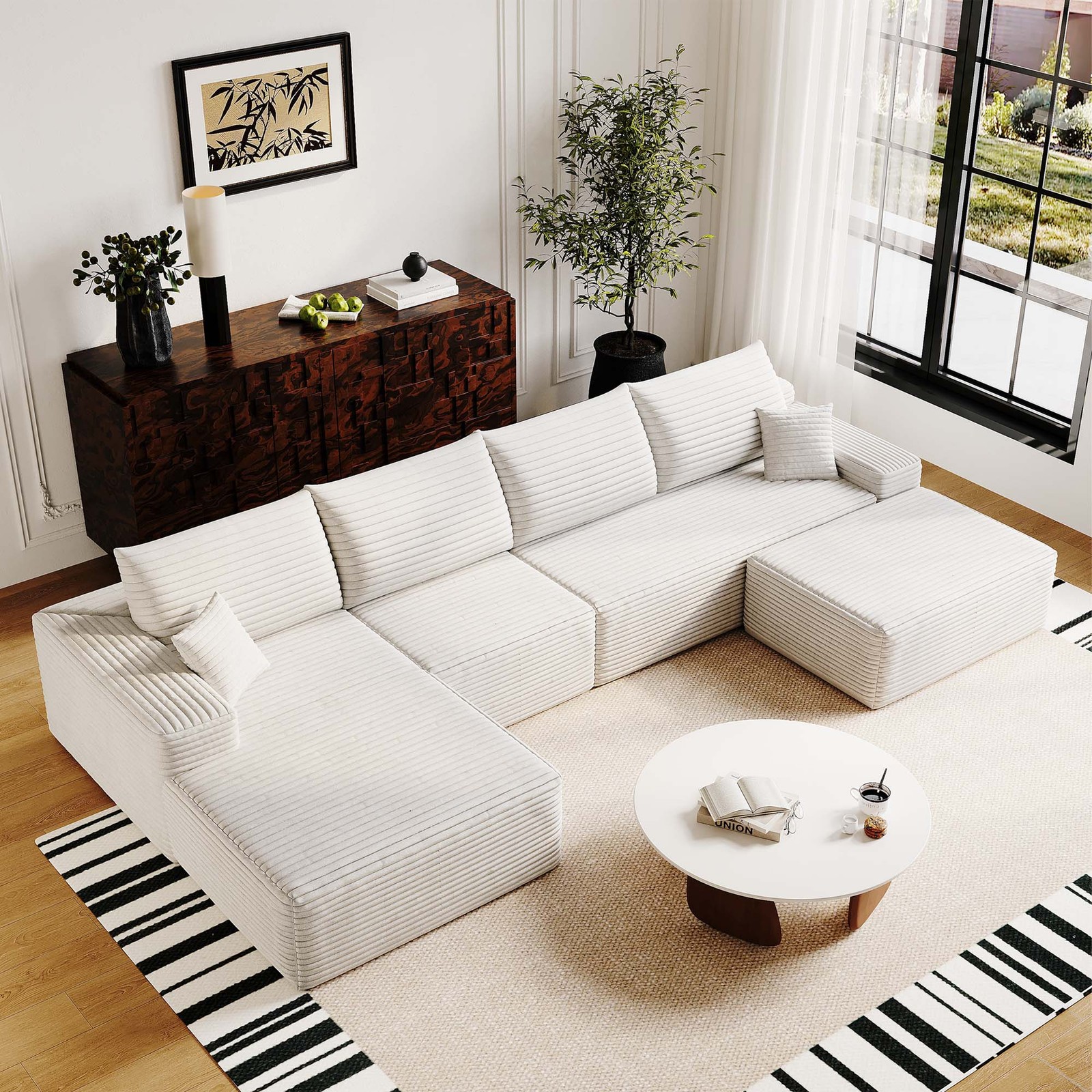 135" U-Shaped Modular Sectional Sofa w/ Chaise & Ottoman, Chenille Fabric