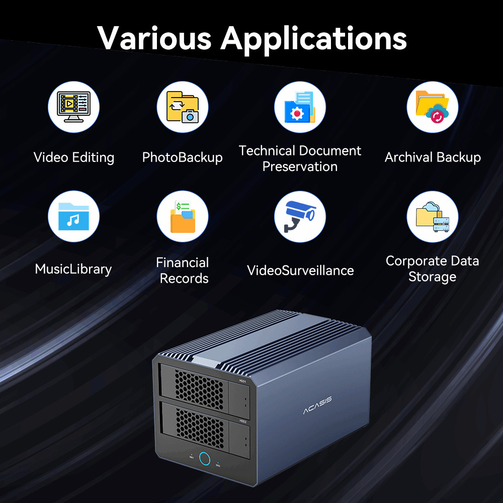 Acasis EC-7252 2.5" Hard Drive Case 2 Bay HDD Enclosure w/ 4 RAID Modes