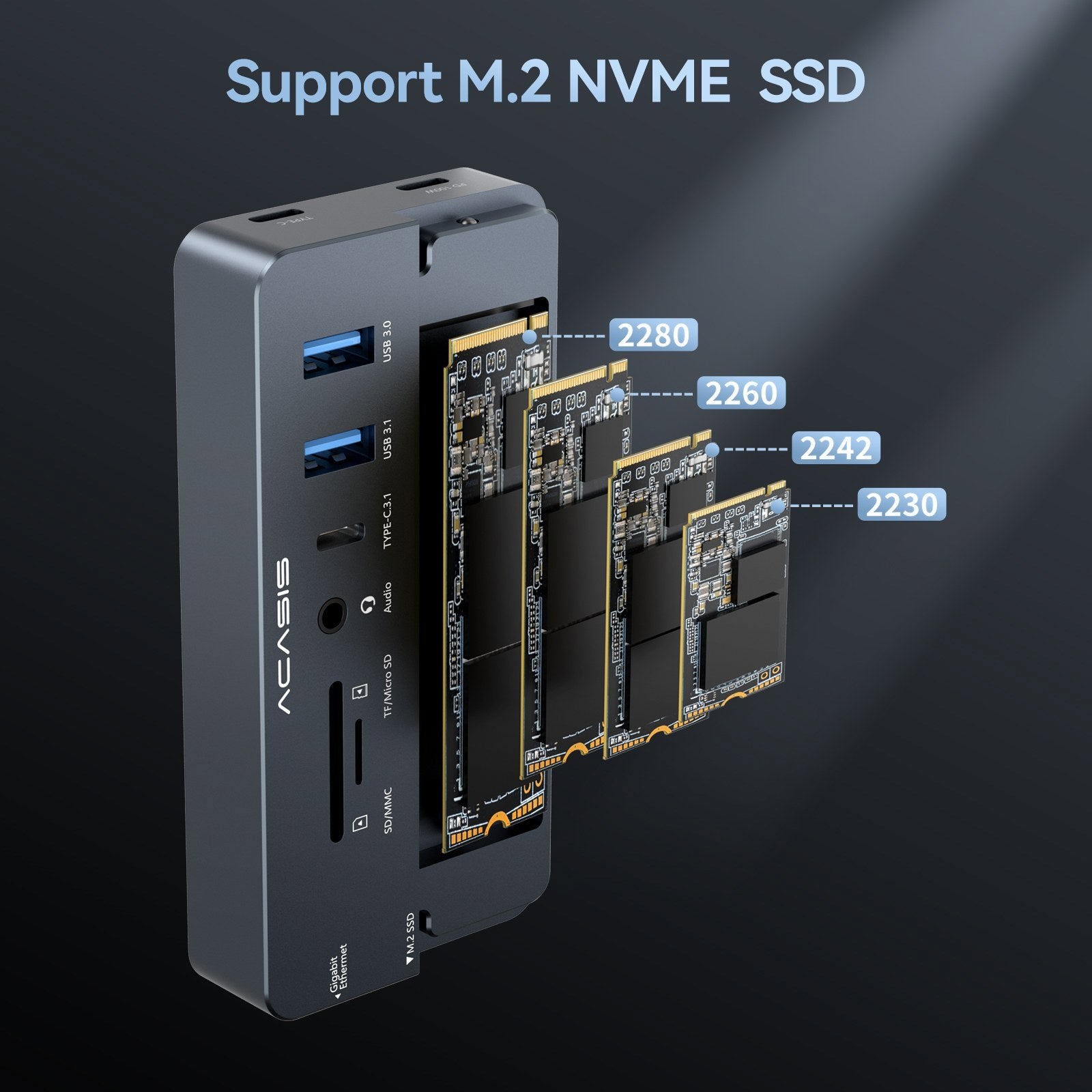 ACASIS 10- in-1 M ulti -F unction E xpansion. This ACASIS Hub has an HDMI output port to connect a monitor to mirror or extend your screen contents in stunning resolution up to 4K@60Hz,with clearer images displayed on your projector,HDTV, monitor to get a visual feast or improving productivity.
