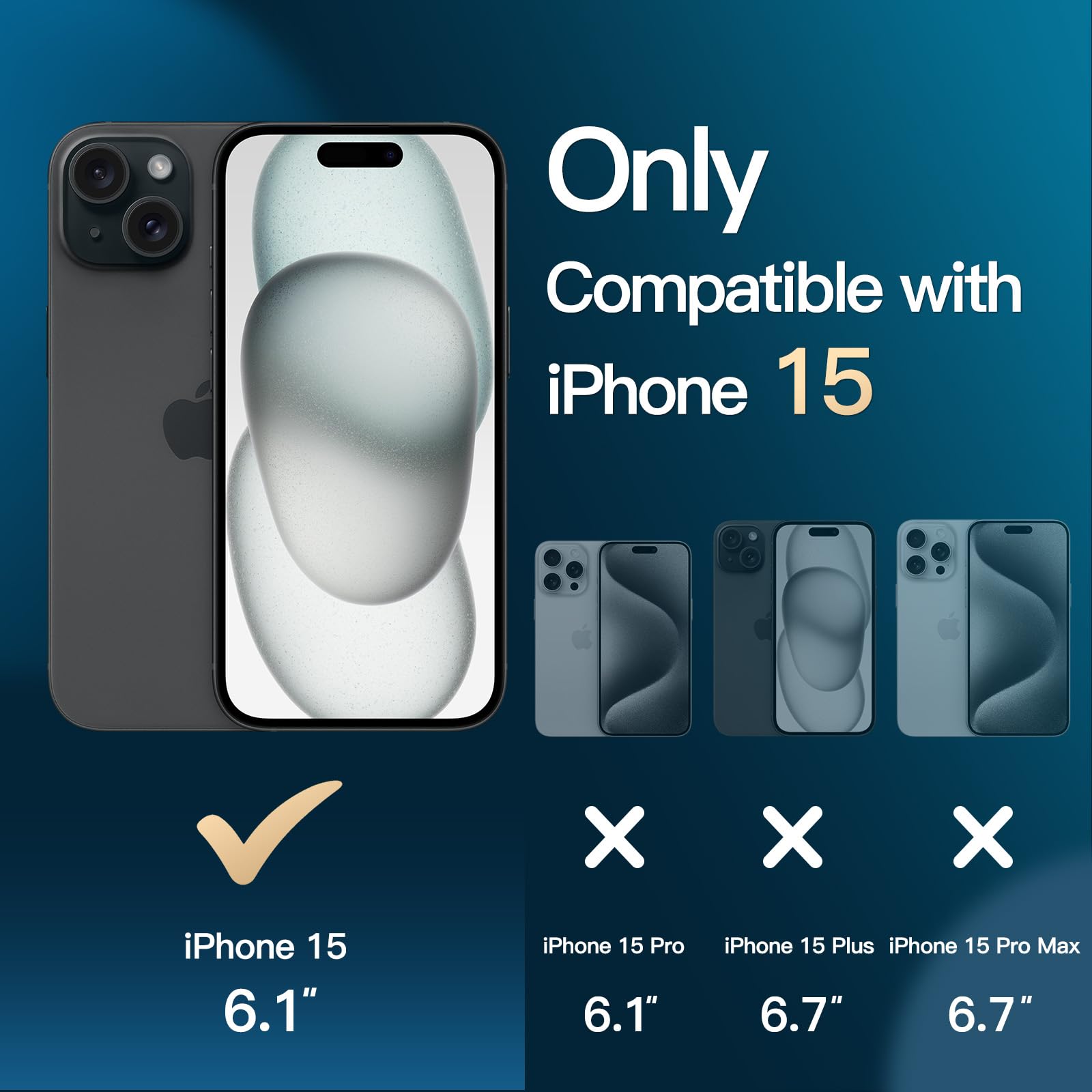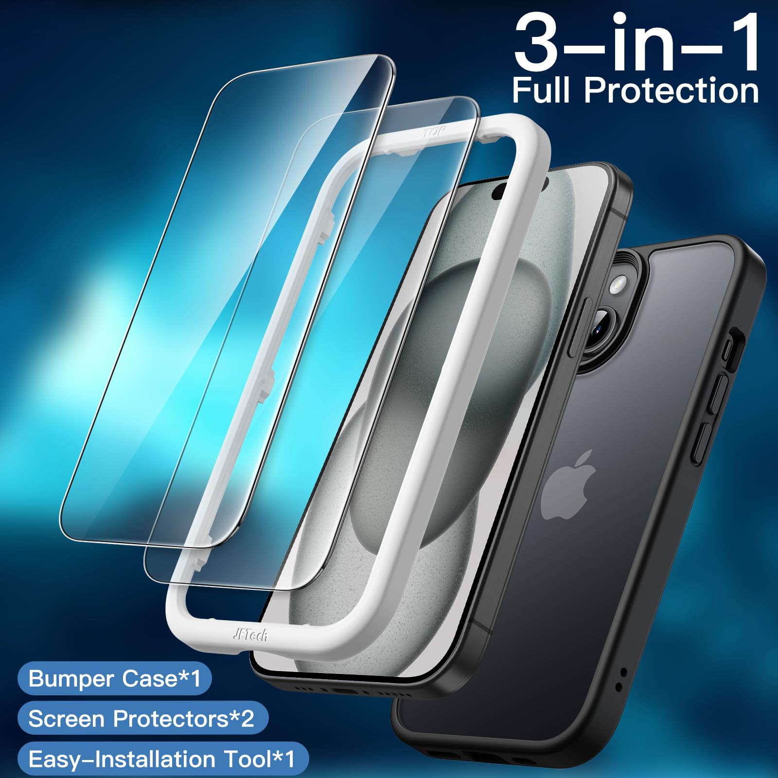JETech 3 in 1 Matte Case for iPhone 15 6.1-Inch with 2-Pack Screen Protector