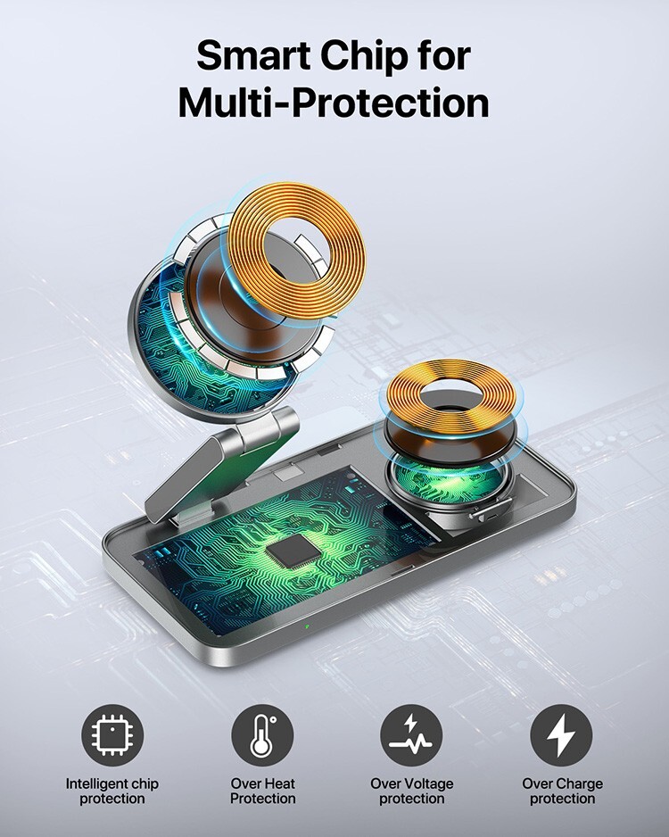 3 in 1 Foldable Magnetic Wireless Charger for iPhone, Apple Watch, and AirPods