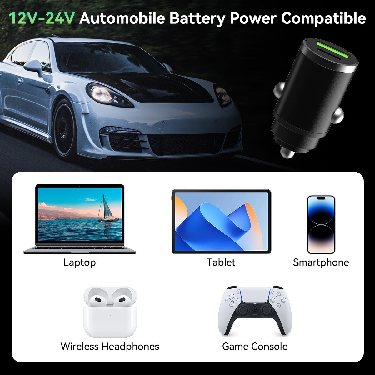 100W Car Charger with Temperature Control, Fast Dual Port Universal 12V-24V