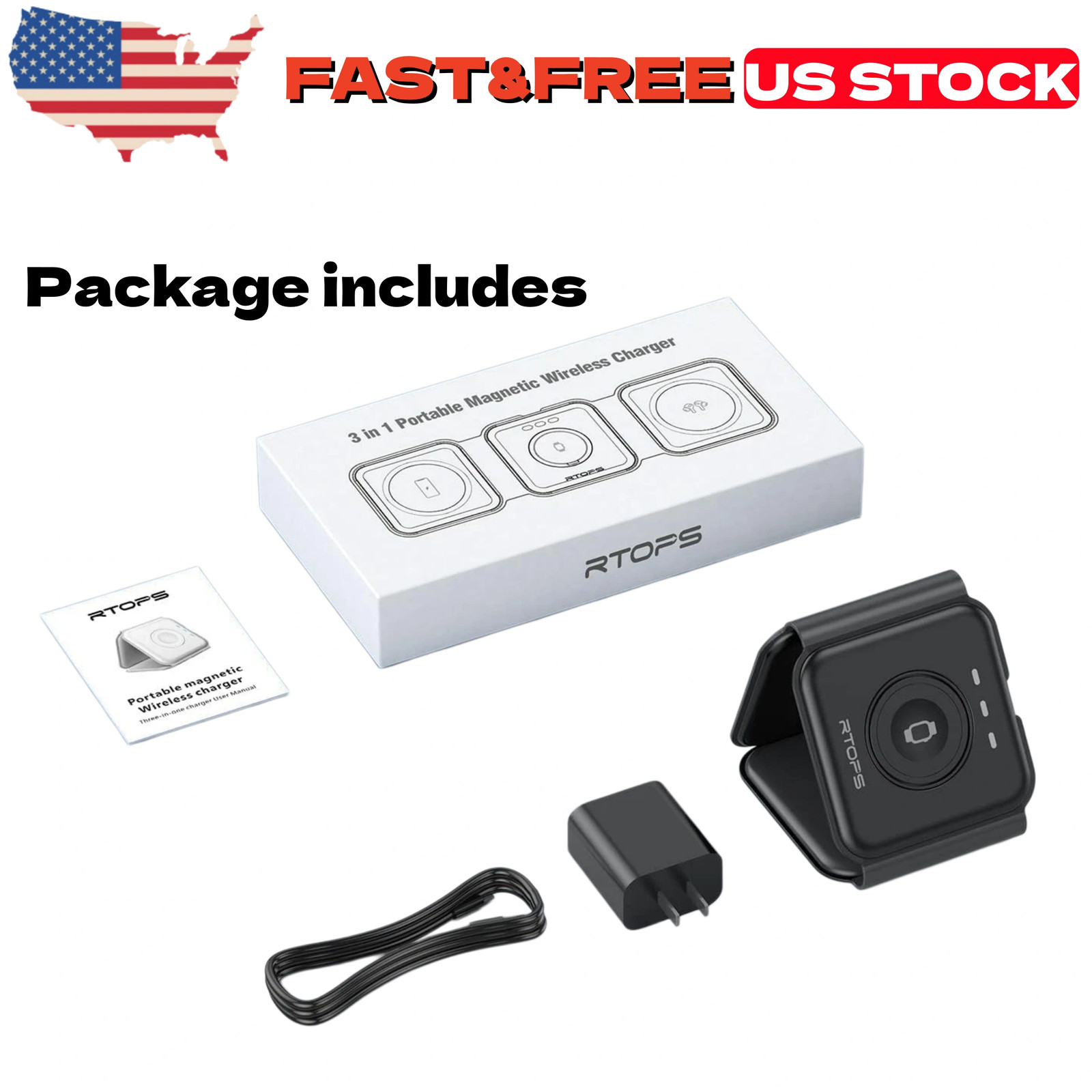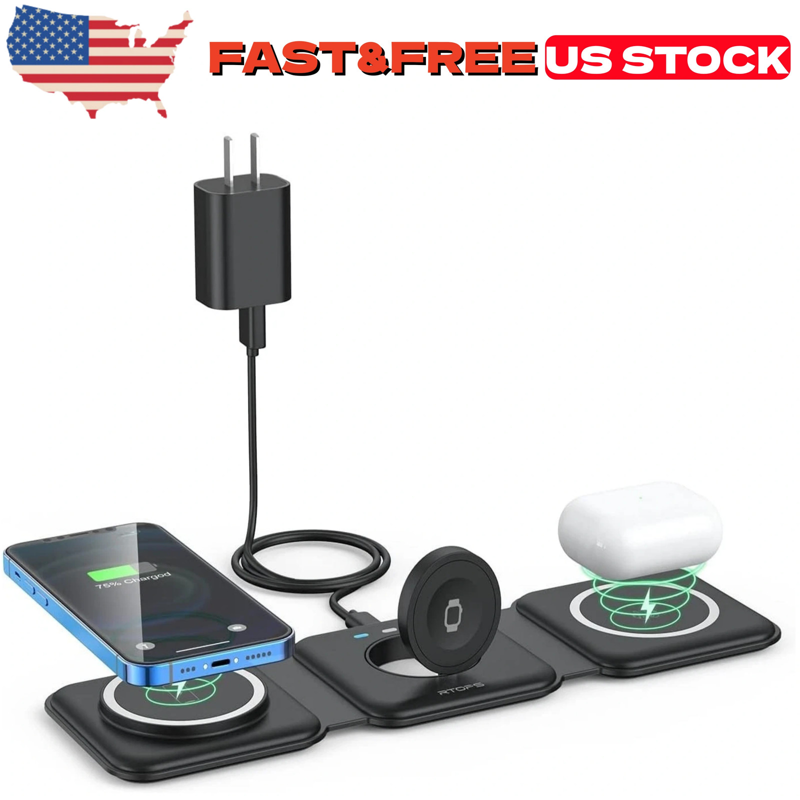 New Wireless Charger 3 in 1,RTOPS Magnetic Travel Wireless Charging Station US
