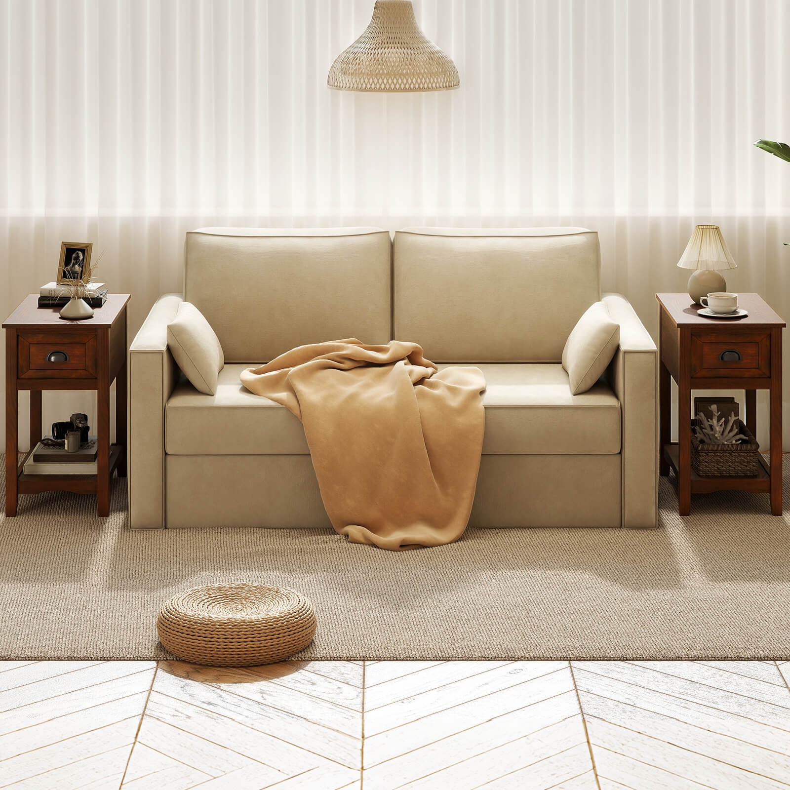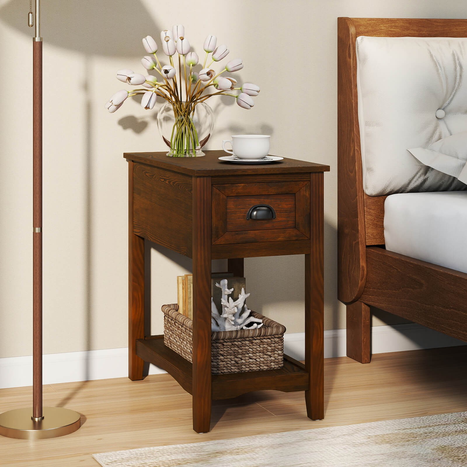 The chair side table has a capacious drawer and a shelf at the bottom to provide large storage space and keep your rooms stay neat. This multifunctional table can be placed in living room, bedroom and study as a nightstand or chair side table.