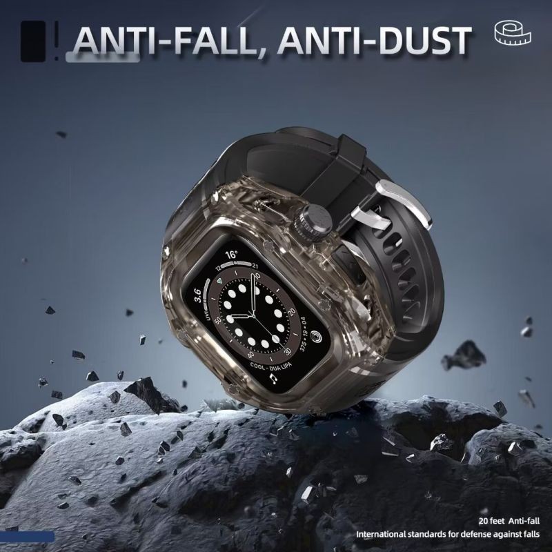Glacier Clear Case Rubber Band Mod Kit For Apple Watch 8 7 SE 6 5 Silicone Strap