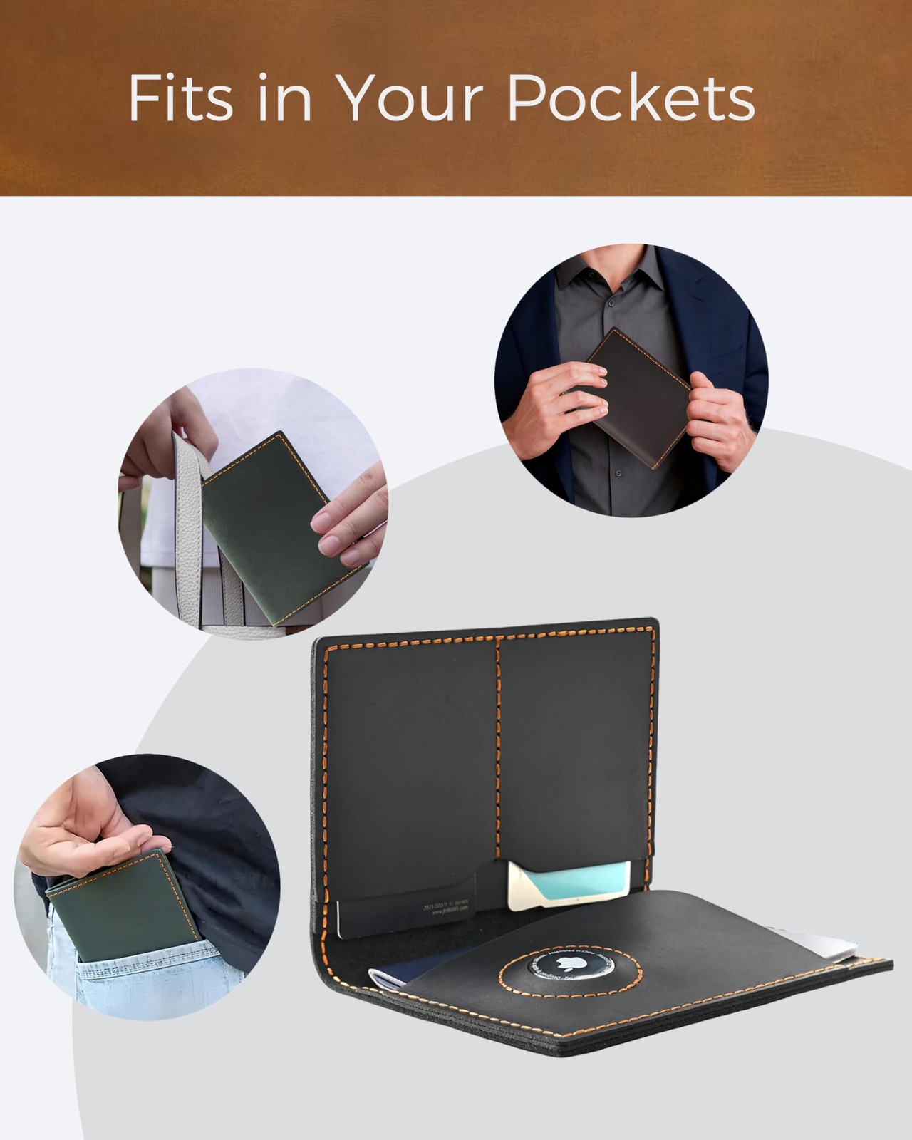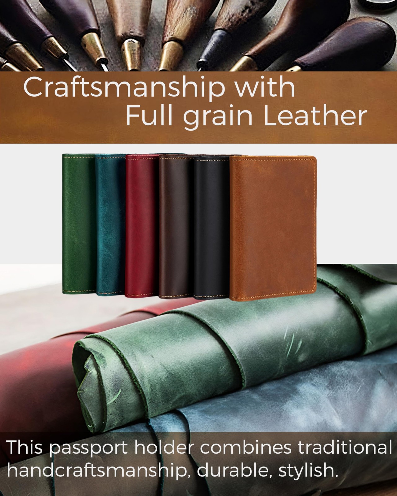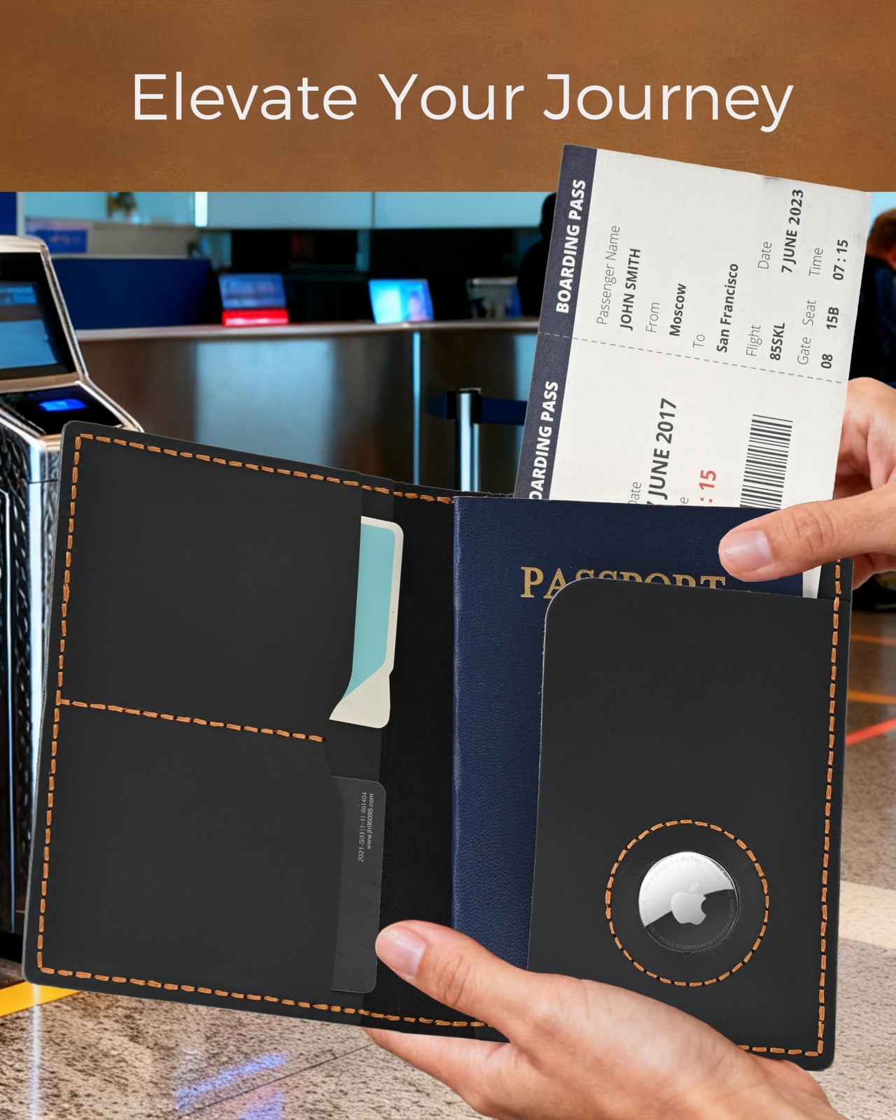 Passport Holder for Travel, Genuine Leather Passport Holder with Airtag Slot for