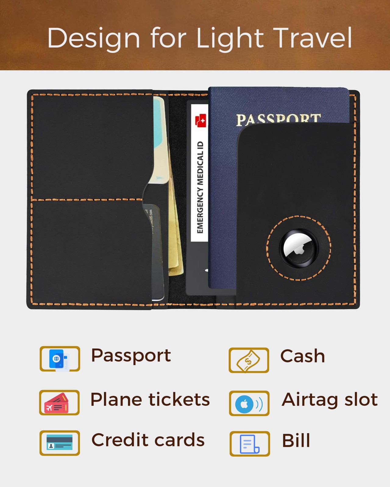 Passport Holder for Travel, Genuine Leather Passport Holder with Airtag Hidden,