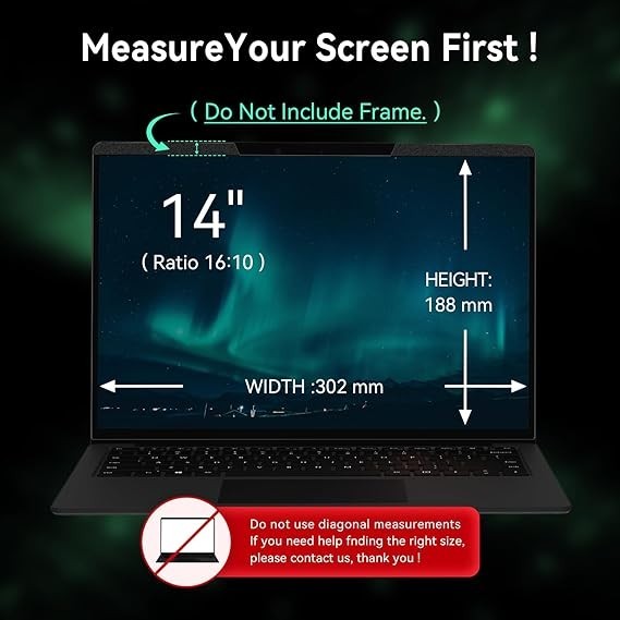 Magnetic Laptop Privacy Screen 14" for 16:10 Monitor Removable Anti Glare