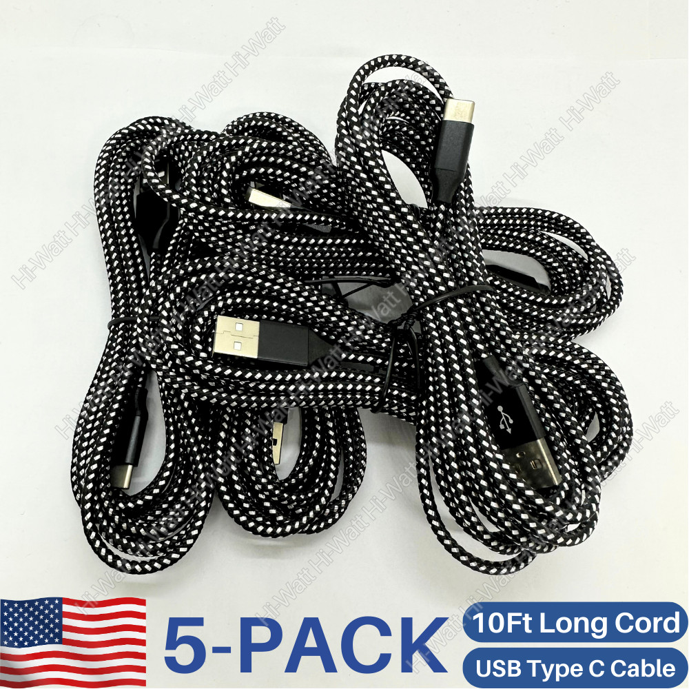 Extra Long 10FT USB Type-C Cables - 5-Pack for Fast Charging & Reliability